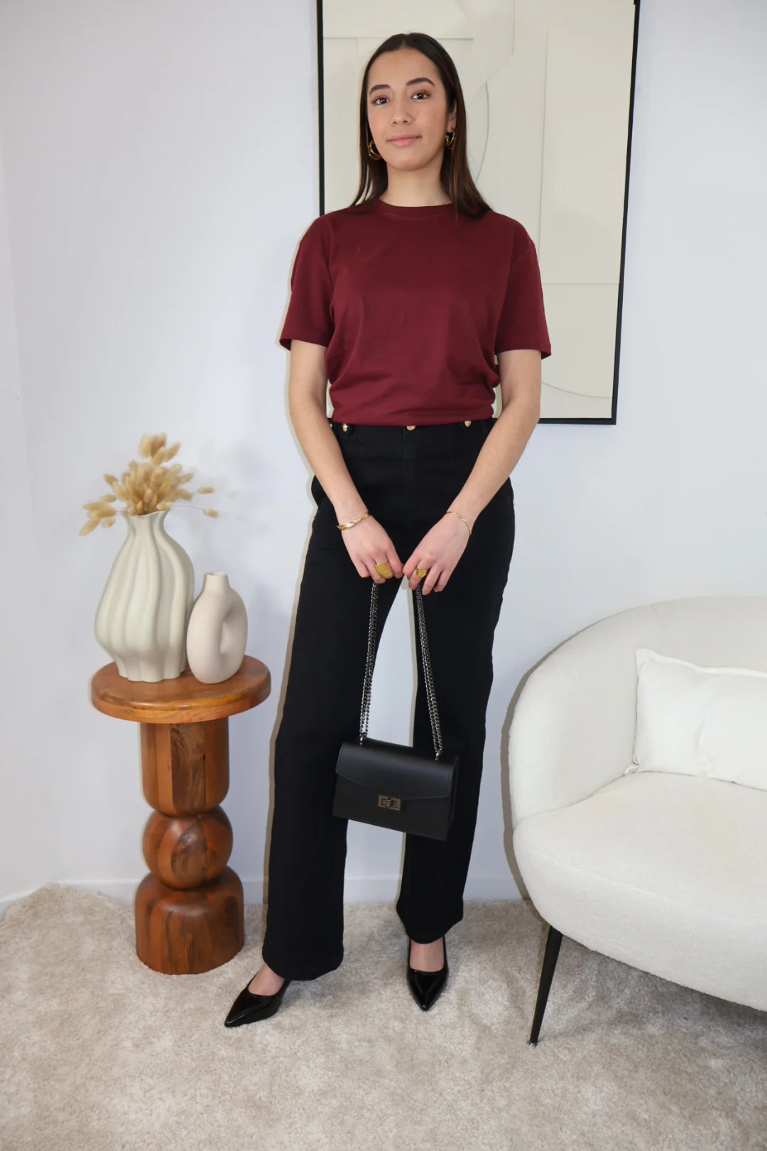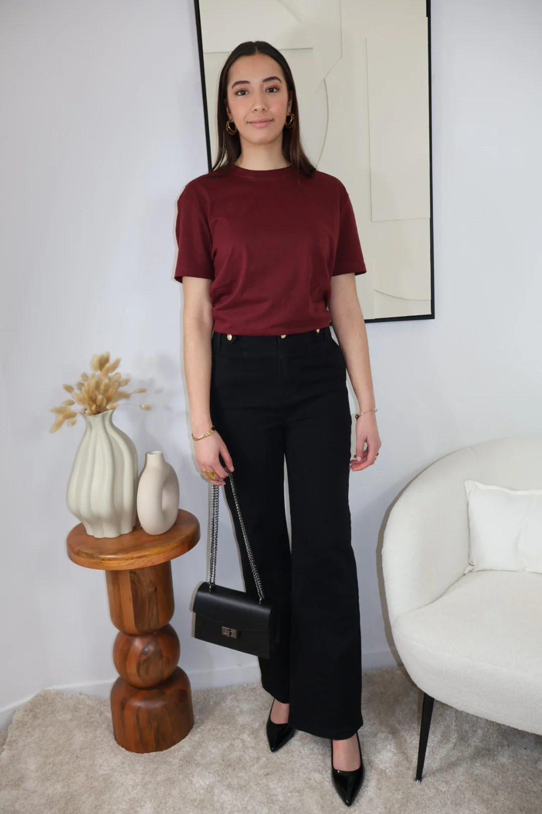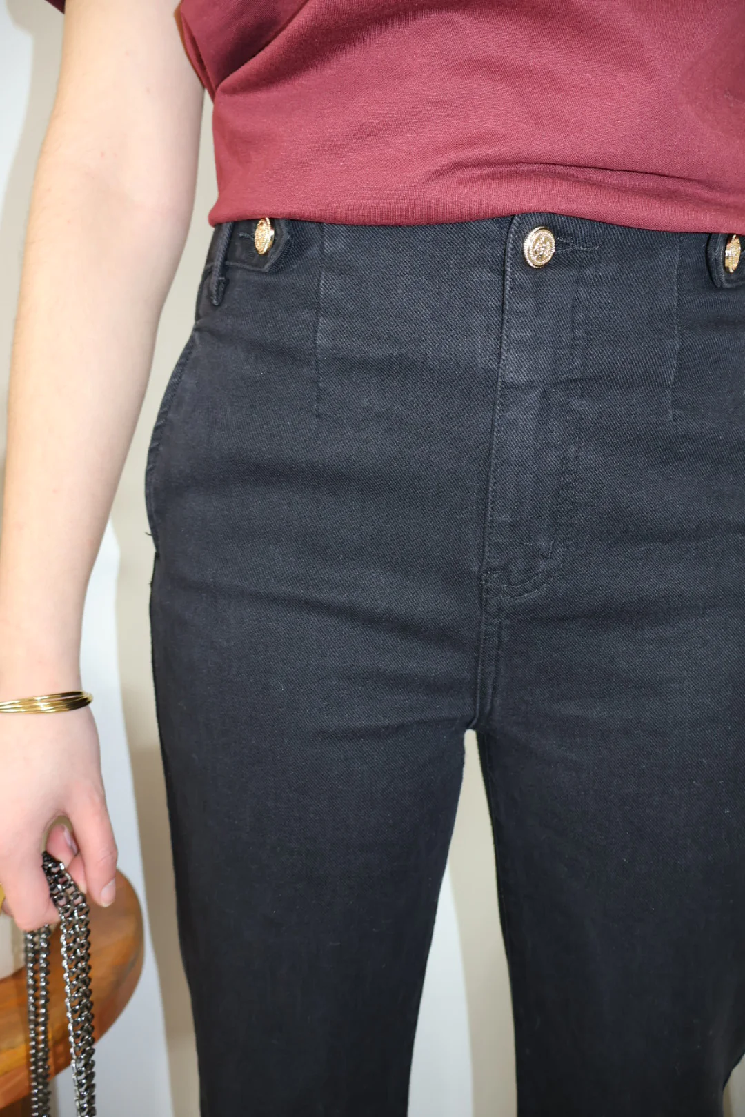 Ce jean noir évasé est une pièce essentielle qui apporte une allure raffinée à votre style quotidien.