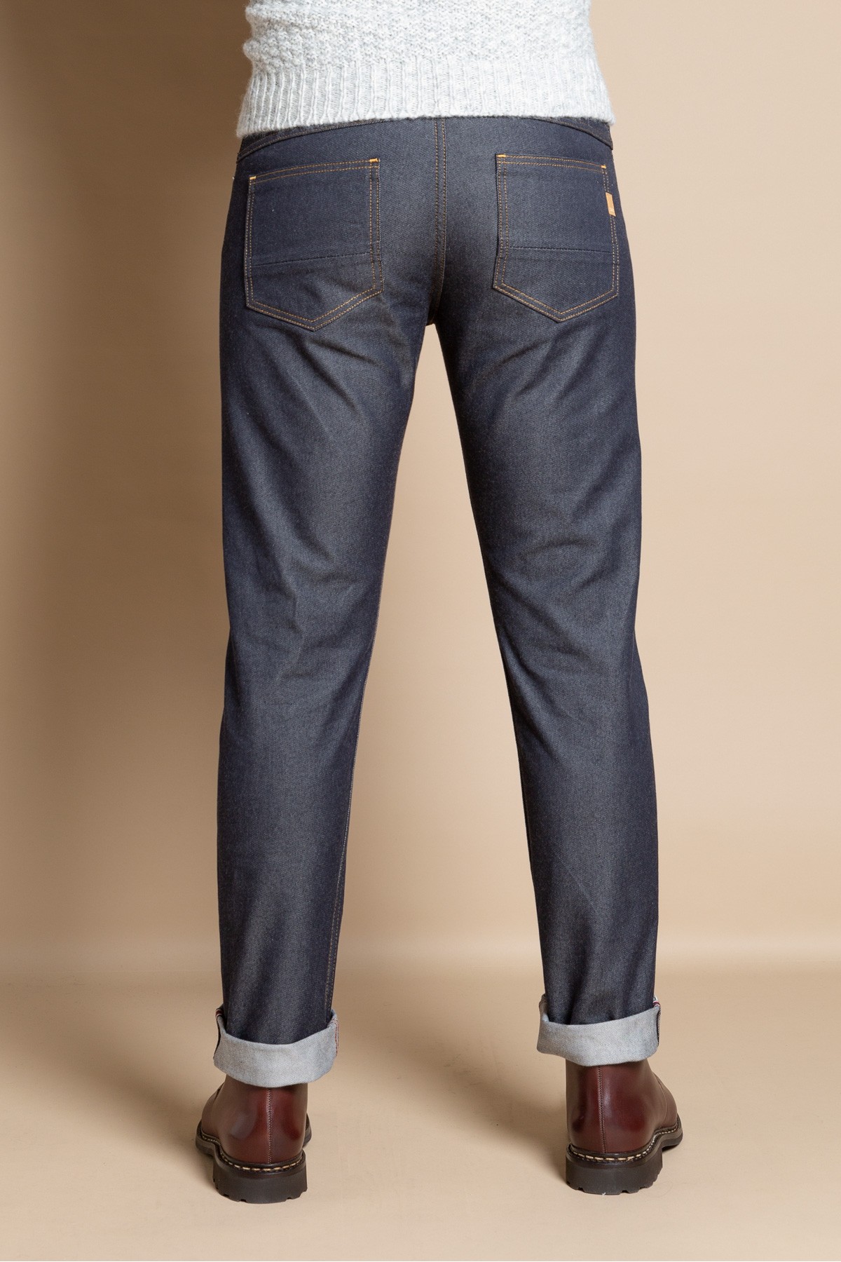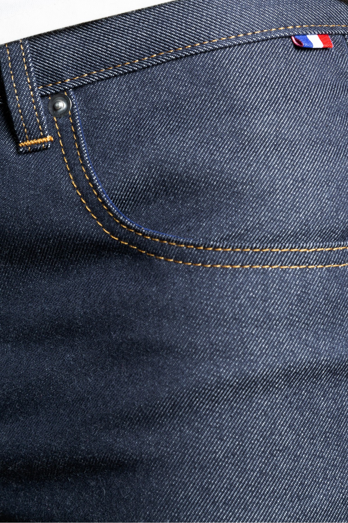Cette fibre leur permet de créer un denim de 14 oz ( 420gr/m2) durable, résistant et doux.