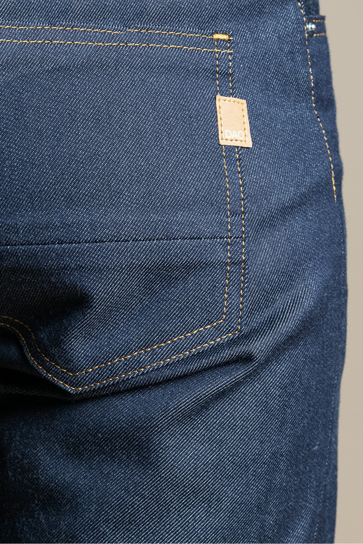 Son tissage classique donne à ce denim un aspect authentique et un style épuré. La lisière signature (bleu, blanc, rouge), en plus de la couleur de fil spécialement développée pour Dao, lui donne un caractère affirmé.