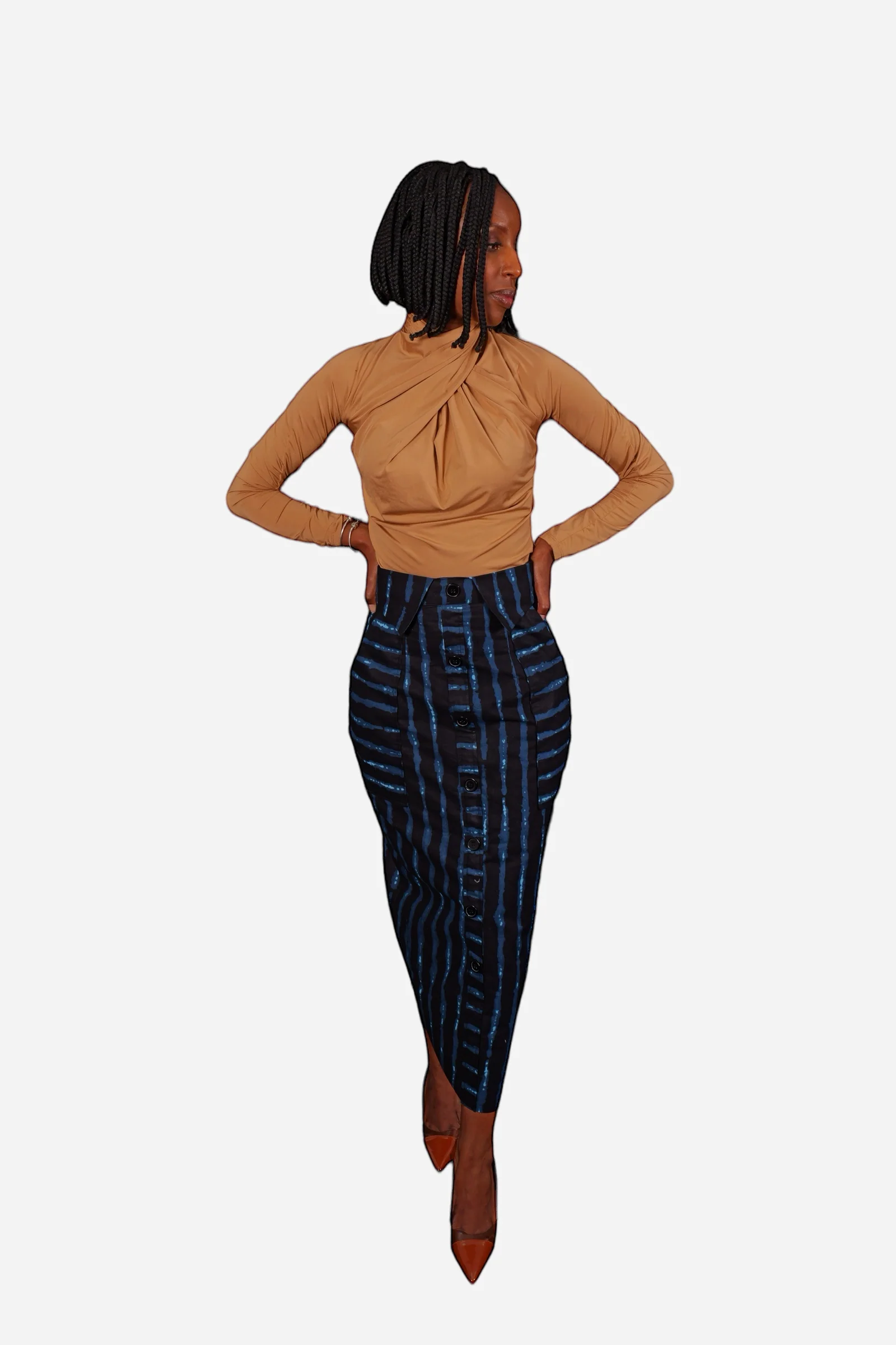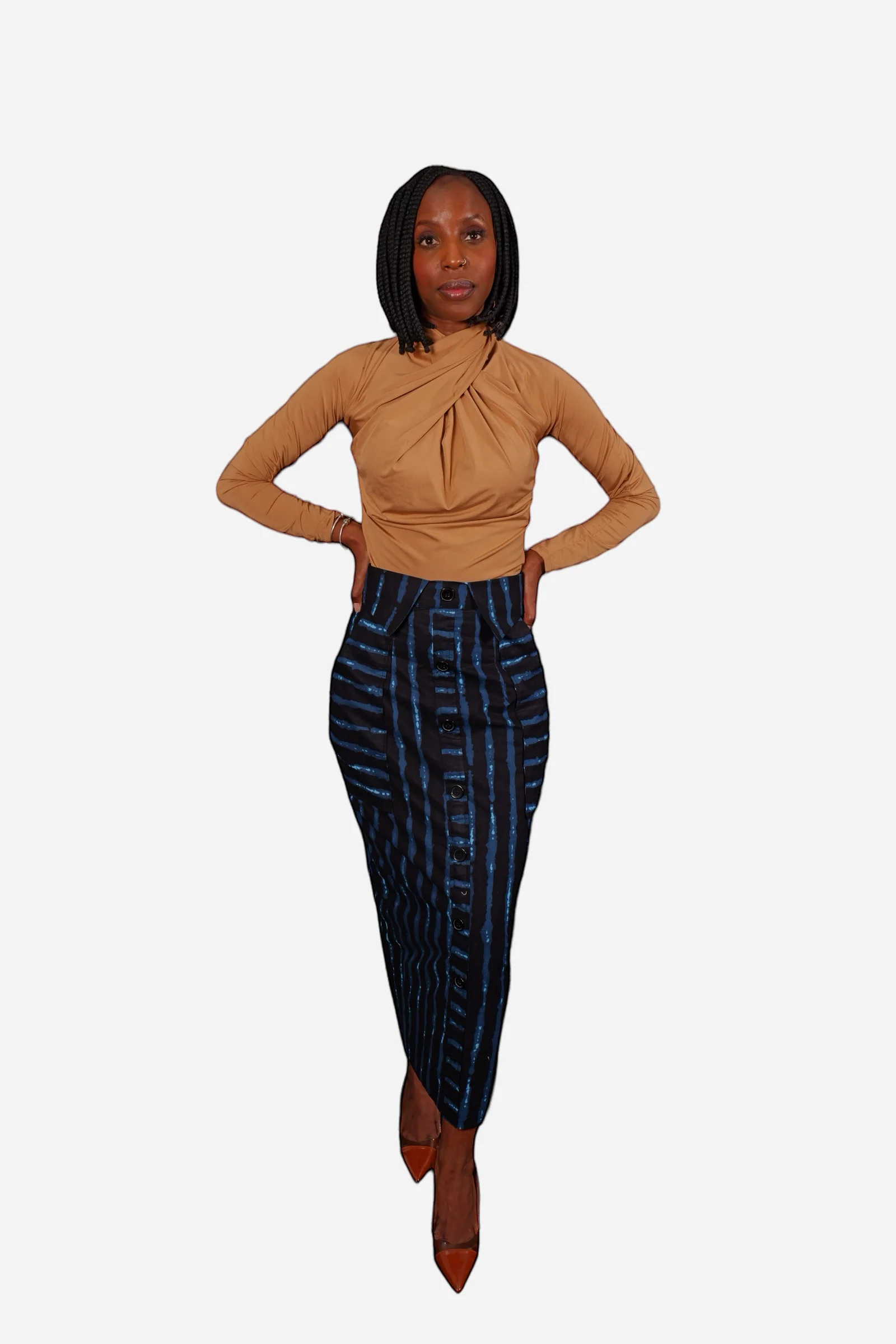 Jupe droite longue boutonné fixe