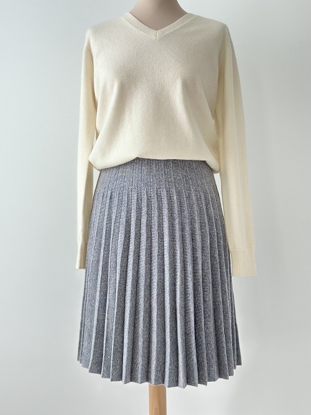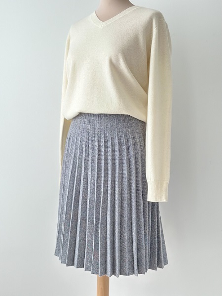 Jupe laine mérinos 100%  en maille serrée effet plissé Excellente qualité Tricotée à partir de laine mérinos 100%, elle vous assure douceur et chaleur La taille est montée sur une ceinture élastique, offrant un confort optimal tout au long de la journée Couleur agréable: gris moyen