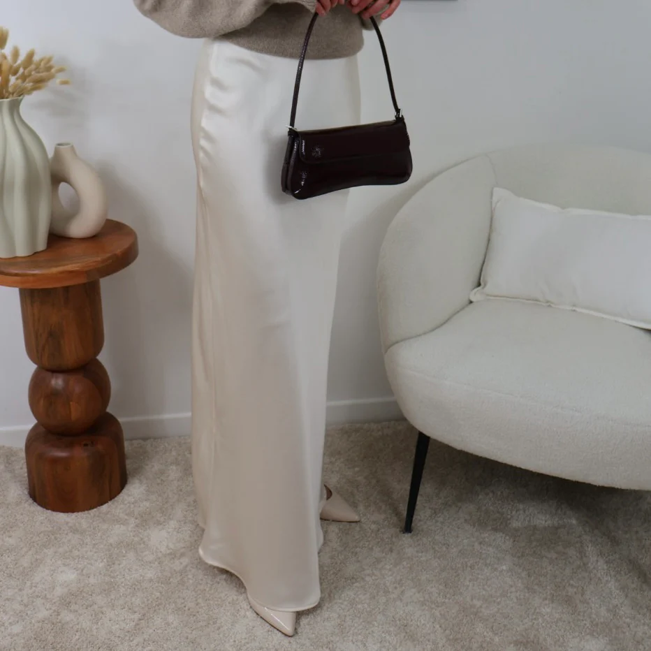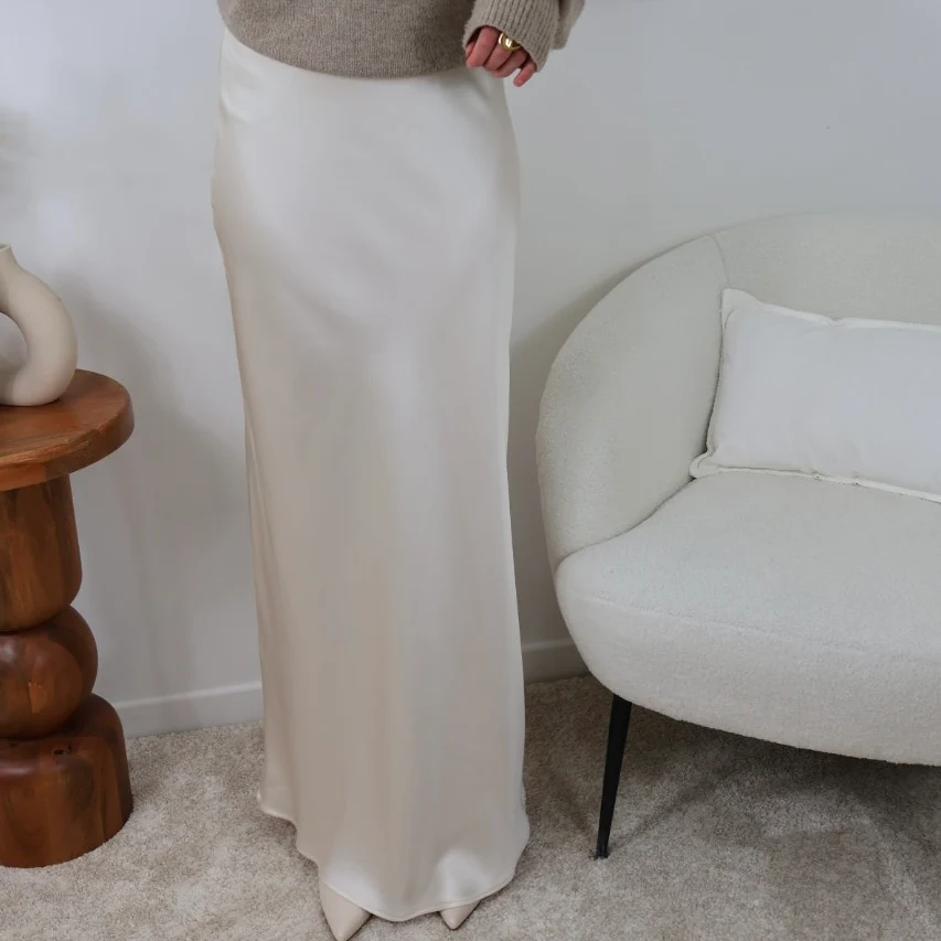 • Jupe extra longue en satin, dotée d’une fermeture éclair sur le côté pour un enfilage facile et un ajustement parfait, idéale pour les grandes tailles, cette jupe sublime la silhouette et apporte une touche de glamour à n’importe quelle tenue.