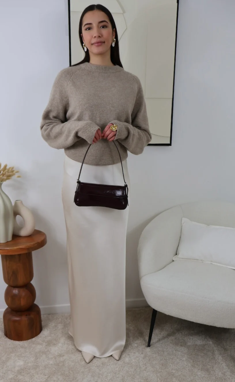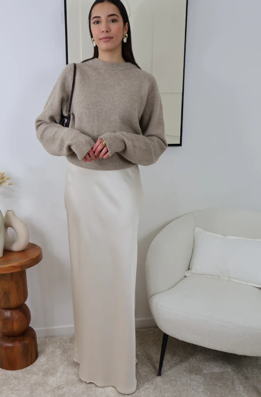 DESCRIPTION : • Jupe extra longue en satin, dotée d’une fermeture éclair sur le côté pour un enfilage facile et un ajustement parfait, idéale pour les grandes tailles, cette jupe sublime la silhouette et apporte une touche de glamour à n’importe quelle tenue. • Couleur : Écru • Longueur : S : 110 cm, M […]