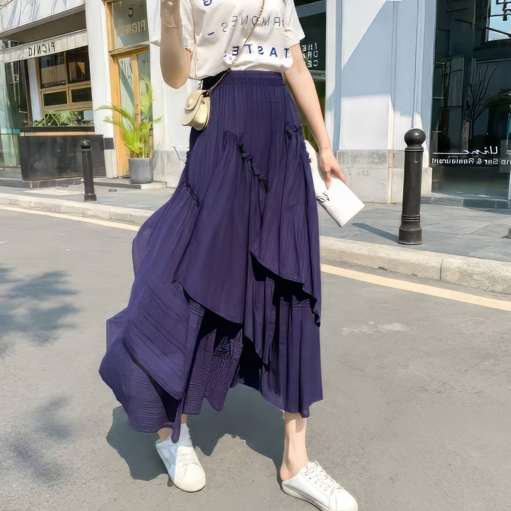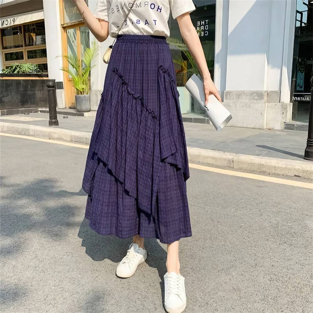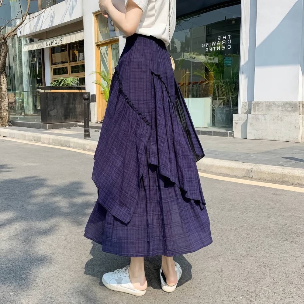 Osez afficher un look authentique avec cette jupe longue asymétrique violet. C’est un excellent choix pour adopter une nouvelle version de la mode écossaise.