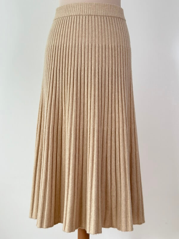 Jupe maille beige plissée en cachemire 100% – longueur 78 cm