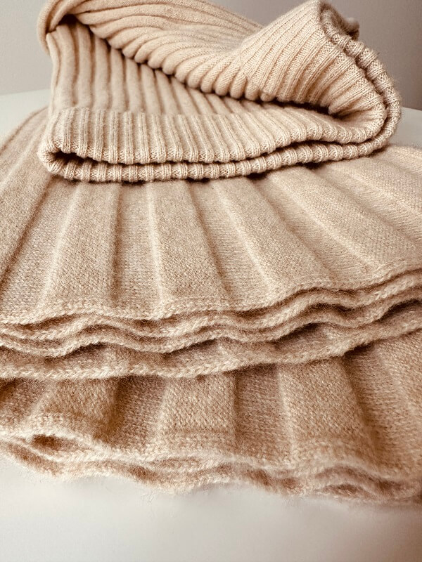Jupe maille beige plissée en cachemire 100%, longueur midi – Julie