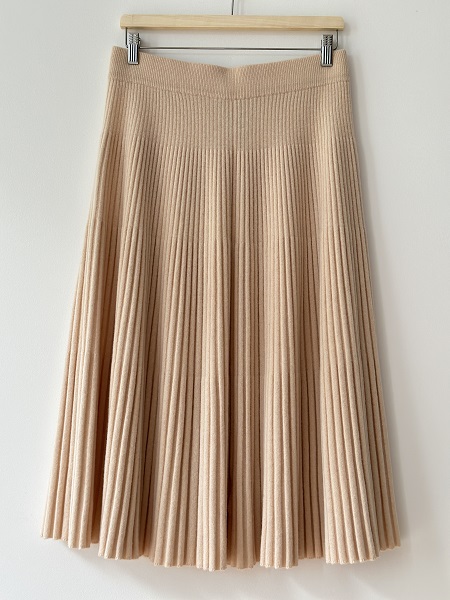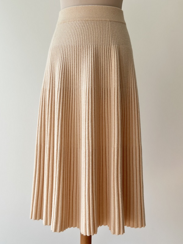Jupe maille plissée longue en laine mérinos 100% beige clair – Vanessa