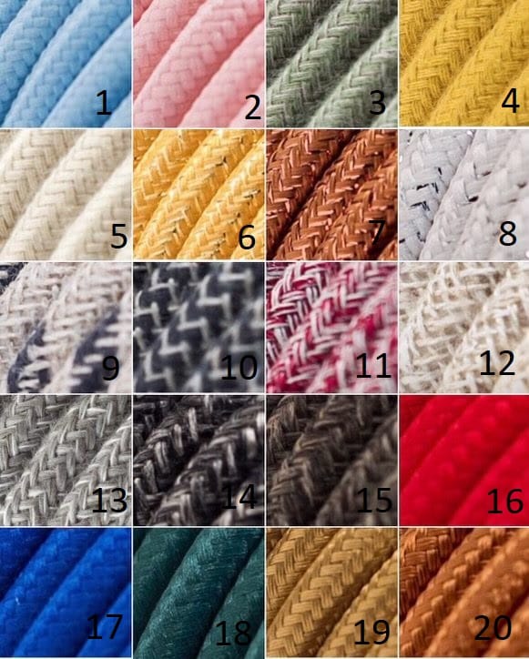 2 mètres de fil électrique / Ampoule LED E14 fournie H 20 x L 17 x P 5 cm Il ne vous reste plus qu’à choisir la couleur du câble !! (indiquez le numéro de la couleur lors de votre commande)