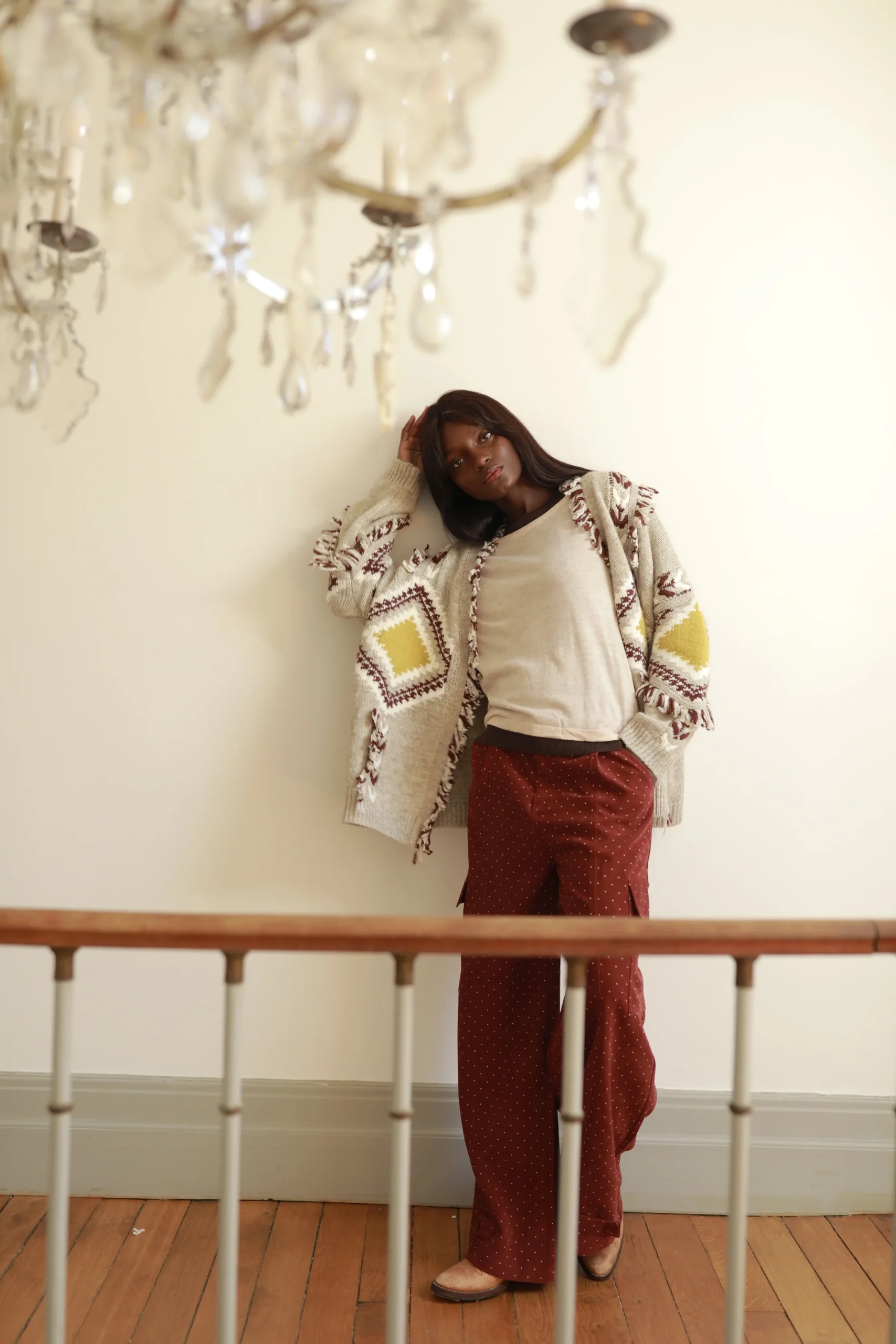 Le gilet Tromso oversize aux inspirations nordiques. Le modèle Tromso séduit par ses motifs jacquard graphiques et ses détails frangés, qui lui confèrent une allure artisanale et contemporaine. Confortable et enveloppant, il se porte aussi bien en pièce forte de la silhouette qu’en superposition cosy. Une pièce statement qui apporte chaleur et caractère à vos […]