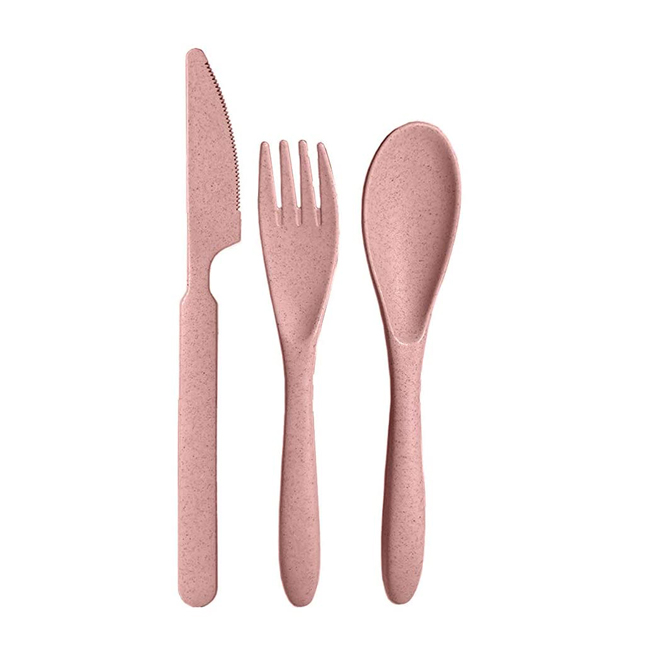 Pratique, ce set contient un couteau, une fourchette et une grande cuillère. Un design ergonomique pour une tenue en main parfaite. Vendus dans une boite également en paille de blé, vous pourrez facilement les transporter sans salir votre sac repas !