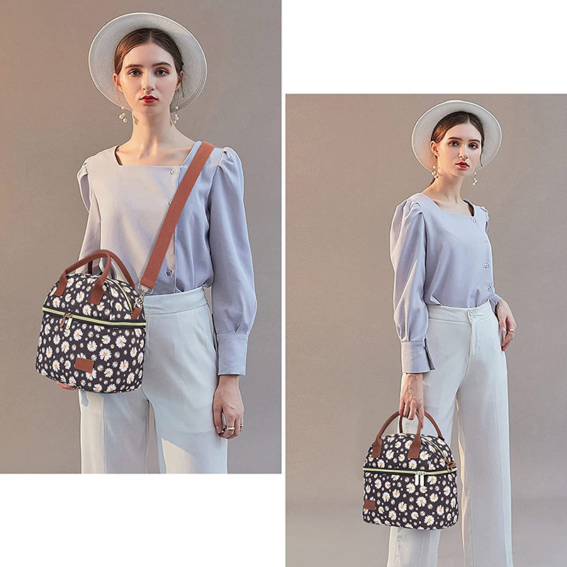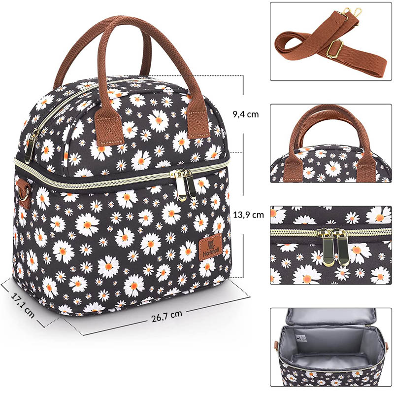 Voici la version améliorée du sac isotherme. Avec sa grande capacité et ses 2 poches séparées, ce lunch bag Isotherme femme Marguerite va vous faciliter vos déjeuner. Suffisamment grand pour emporter votre repas avec vous, son format est parfait pour y glisser une lunch box et une boisson. Grâce à lui, vos aliments resteront bien frais jusqu’à l’heure du déjeuner.