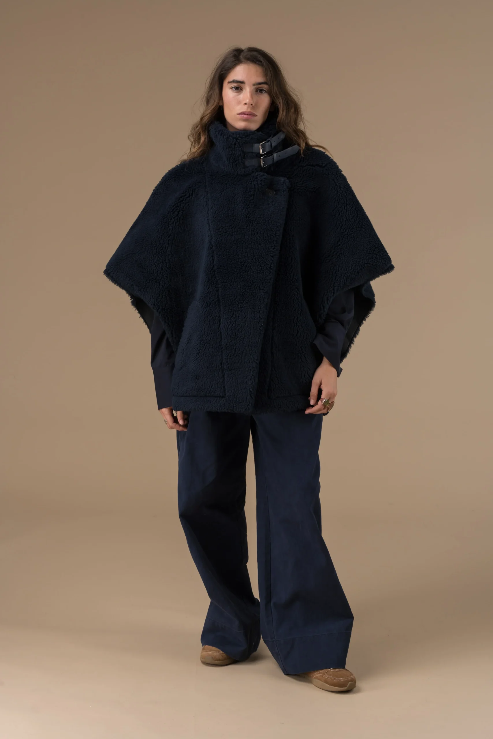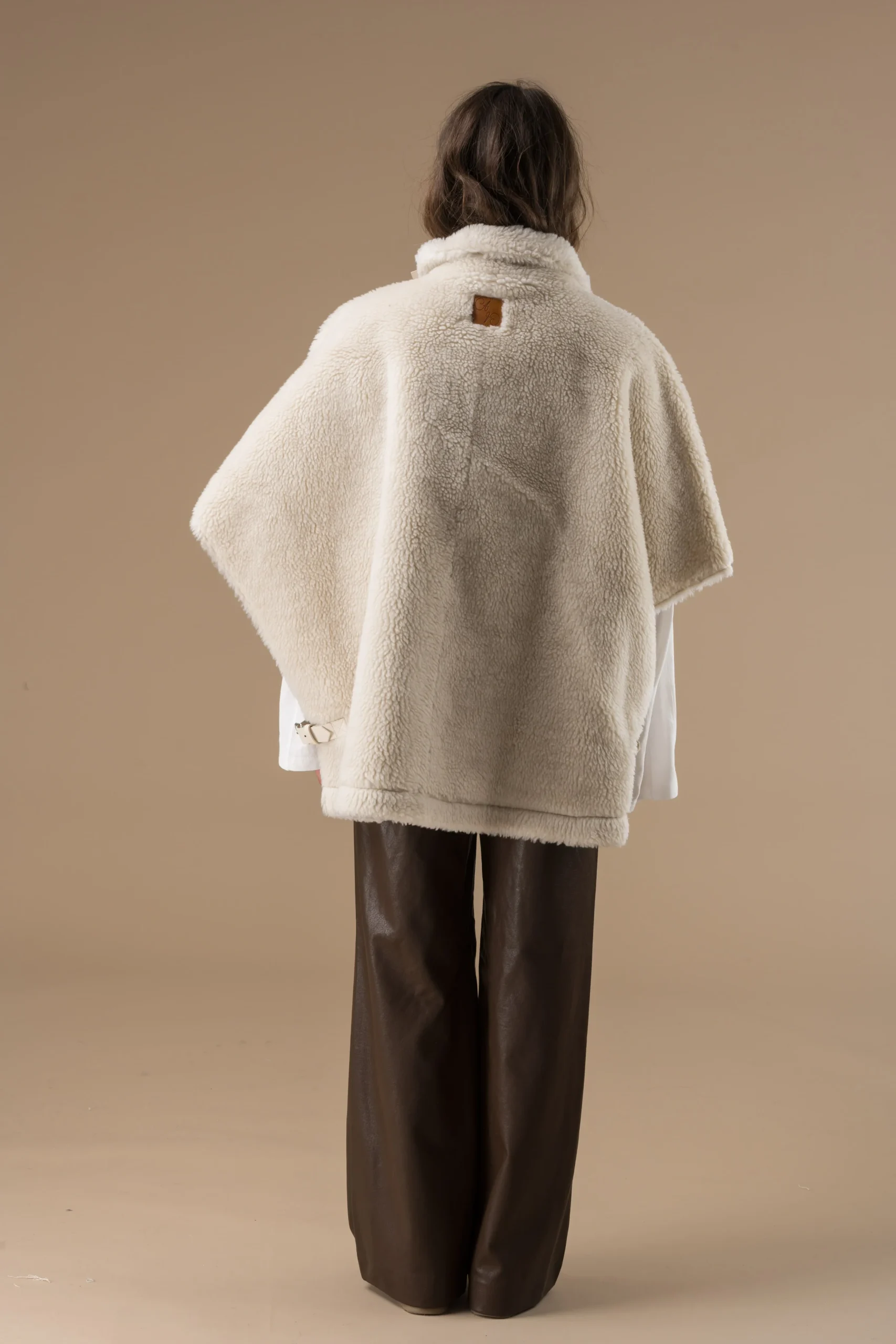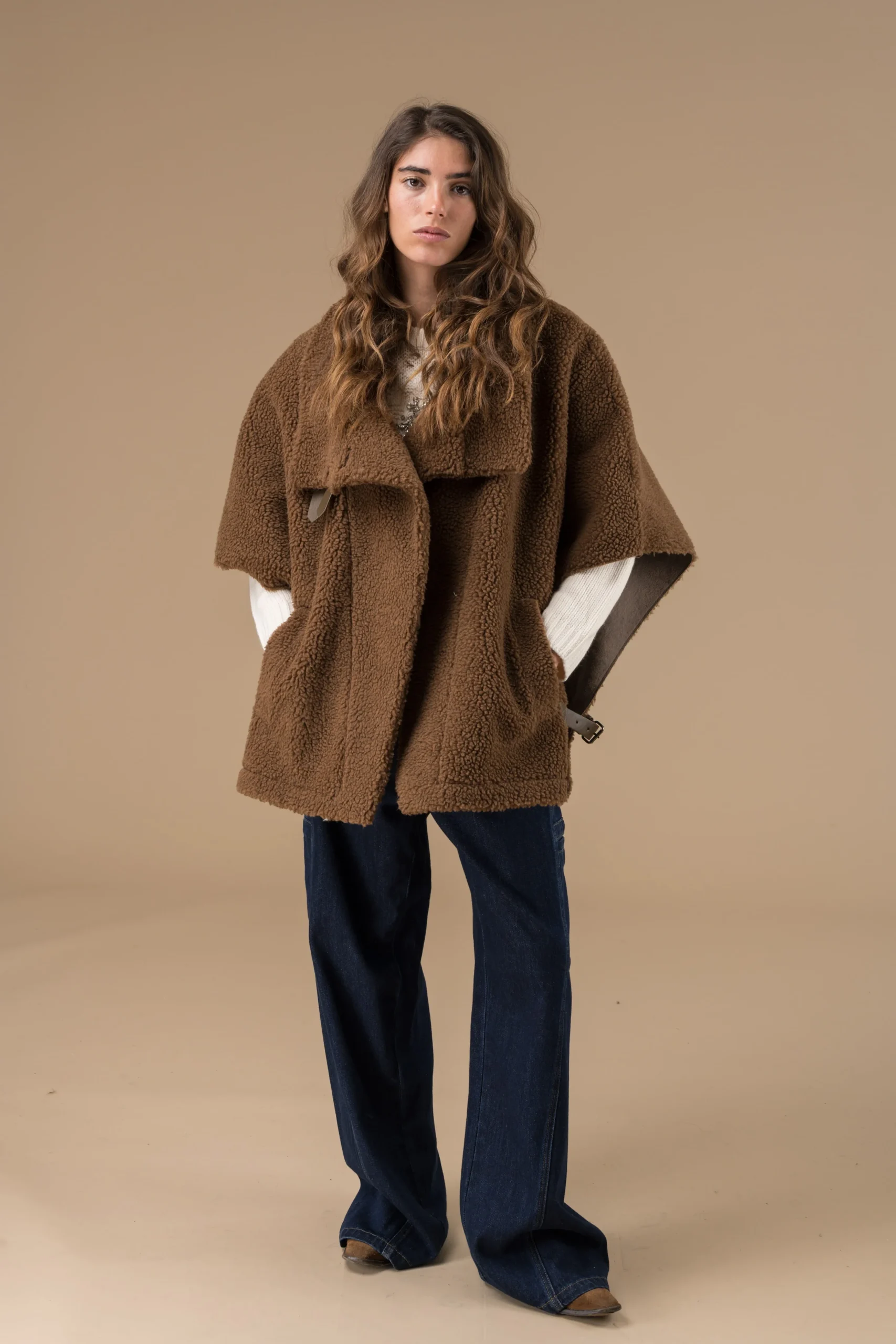 Manteau Olga fausse fourrure en mouton retourné. Avec sa matière fausse fourrure façon mouton retourné et ses détails boucles contrastées, le manteau Olga combine chaleur et style. Sa coupe oversize, facile à porter, en fait la pièce cosy idéale pour l’hiver.