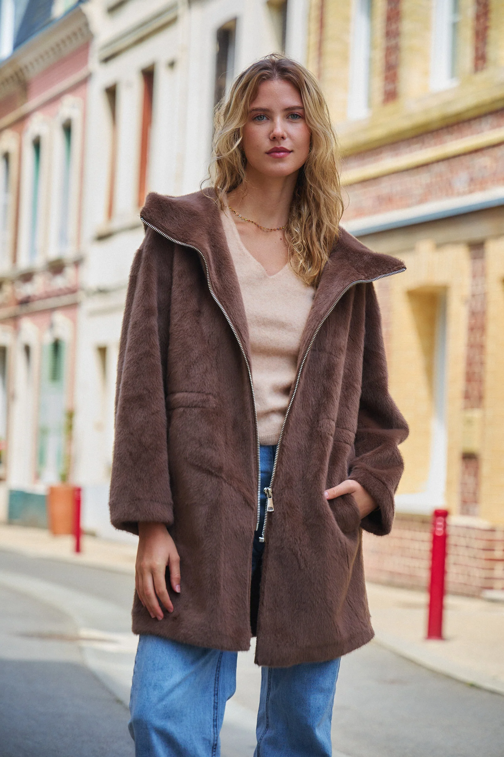 Chaleureuse, douce et élégante, le manteau Marika est un indispensable pour un look raffiné et confortable. Sa coupe droite et sa capuche enveloppante apportent une touche de modernité, tandis que sa longueur offre une silhouette élancée et tendance. Parfaite pour vos journées d’automne ou de printemps, elle allie style et confort à la perfection.
