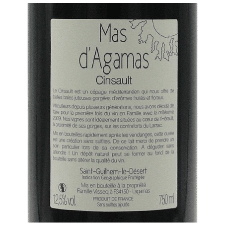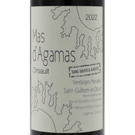 Au Mas d’Agamas, les vins sont élaborés dans l’amitié et l’esprit de famille. Les vendanges sont manuelles pour ce Saint-Guilhem-le-Désert Cinsault. C’est un vin de copains sans sulfites, souple et facile à boire.