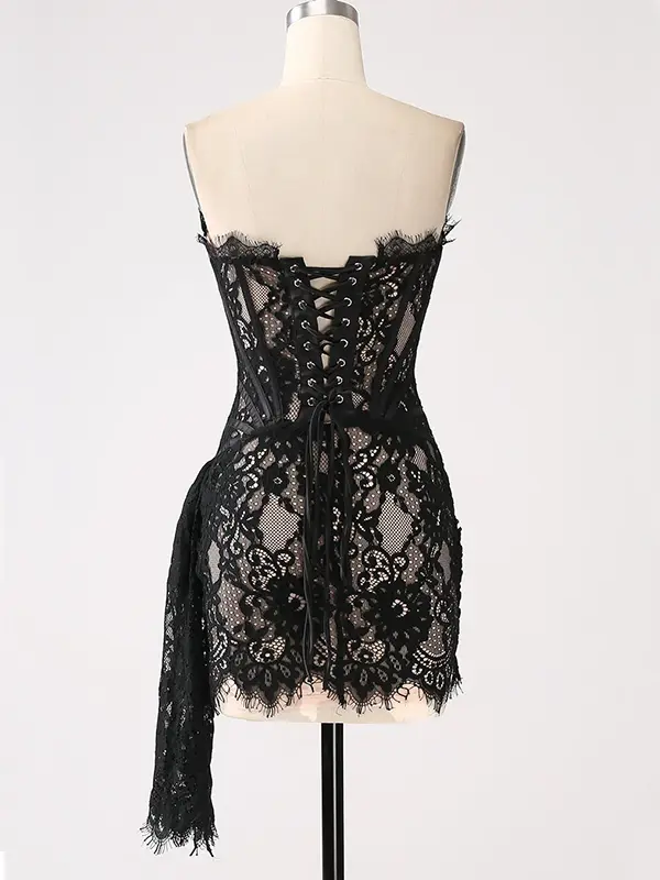 Avec des détails complexes et une allure séduisante, notre mini robe de soirée dentelle noire corset est le choix parfait pour une soirée inoubliable.