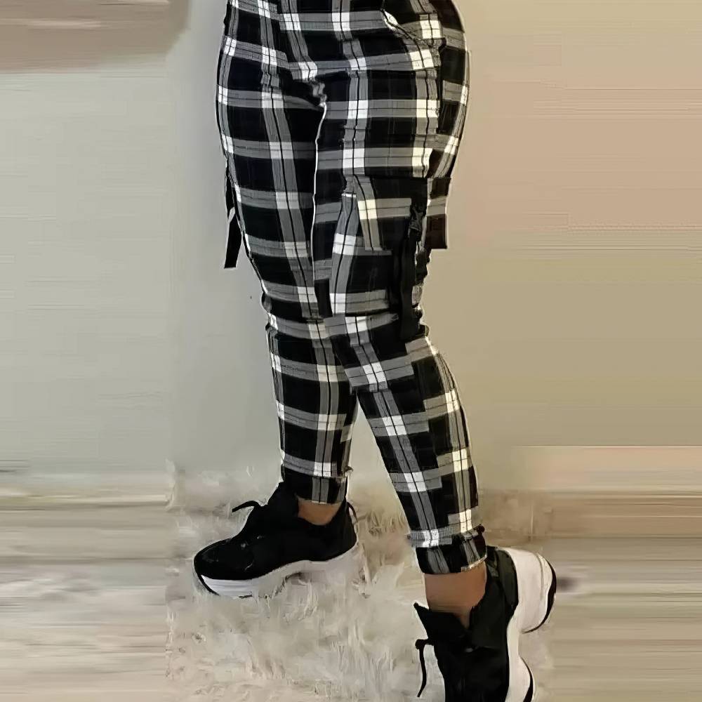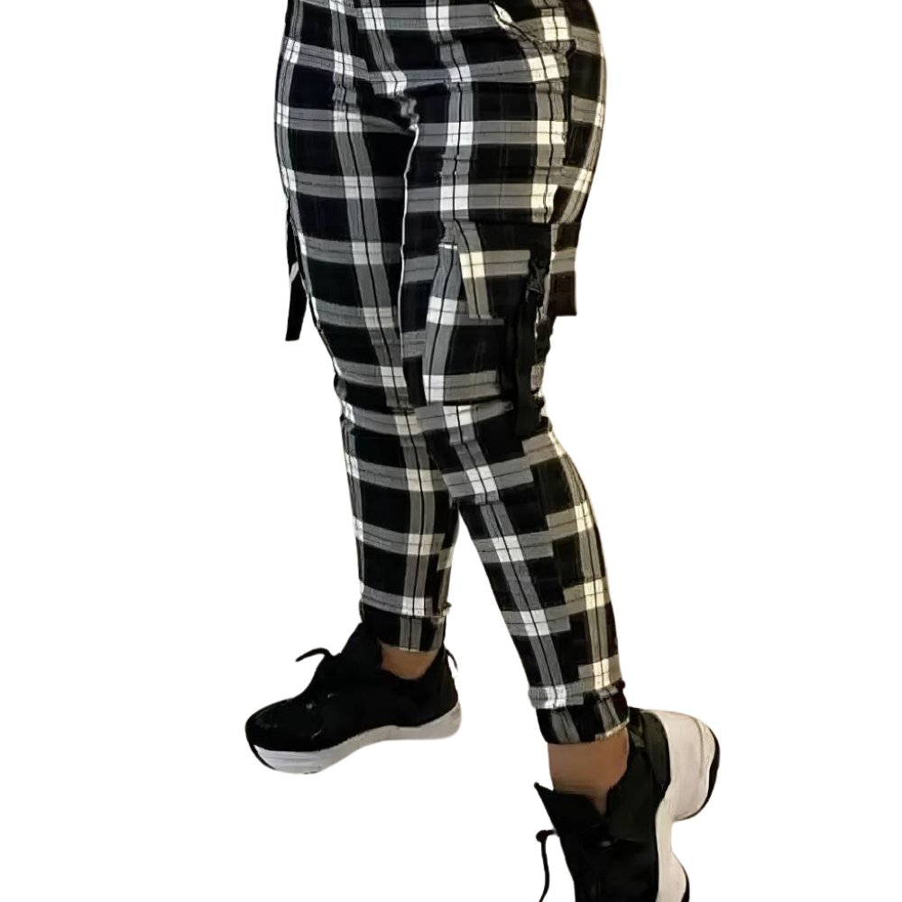 Pantalon Cargo Écossais À Carreaux Noir Et Blanc