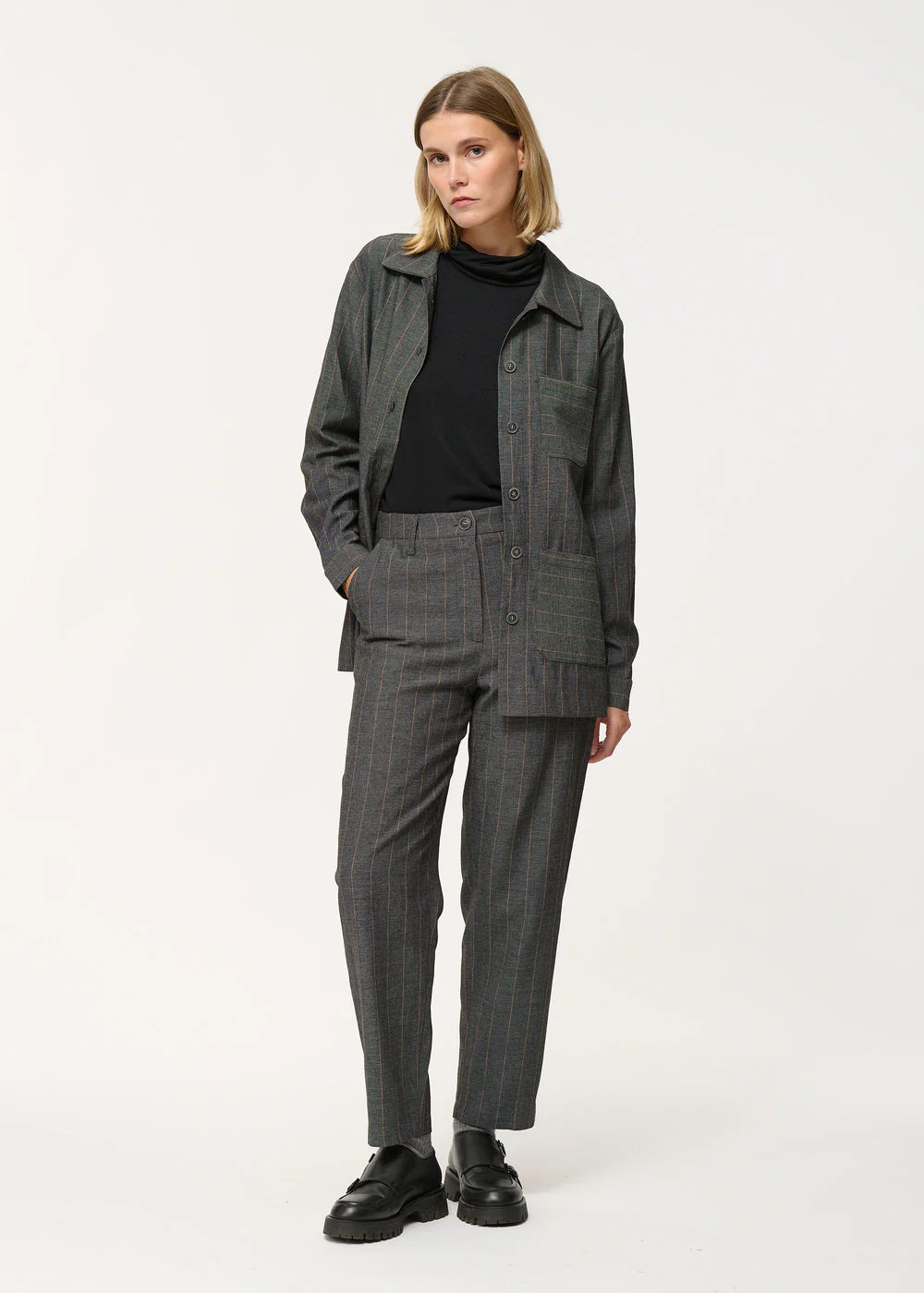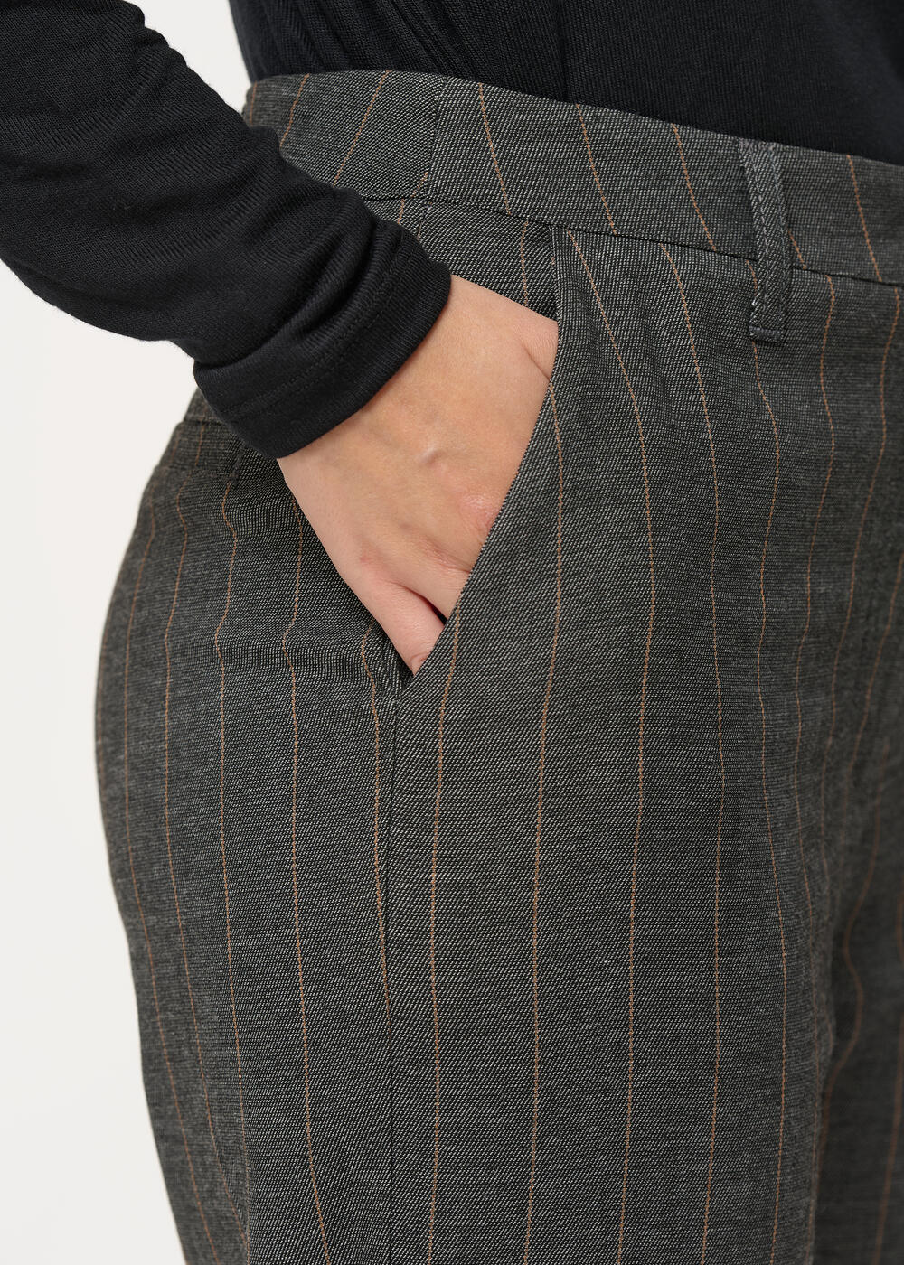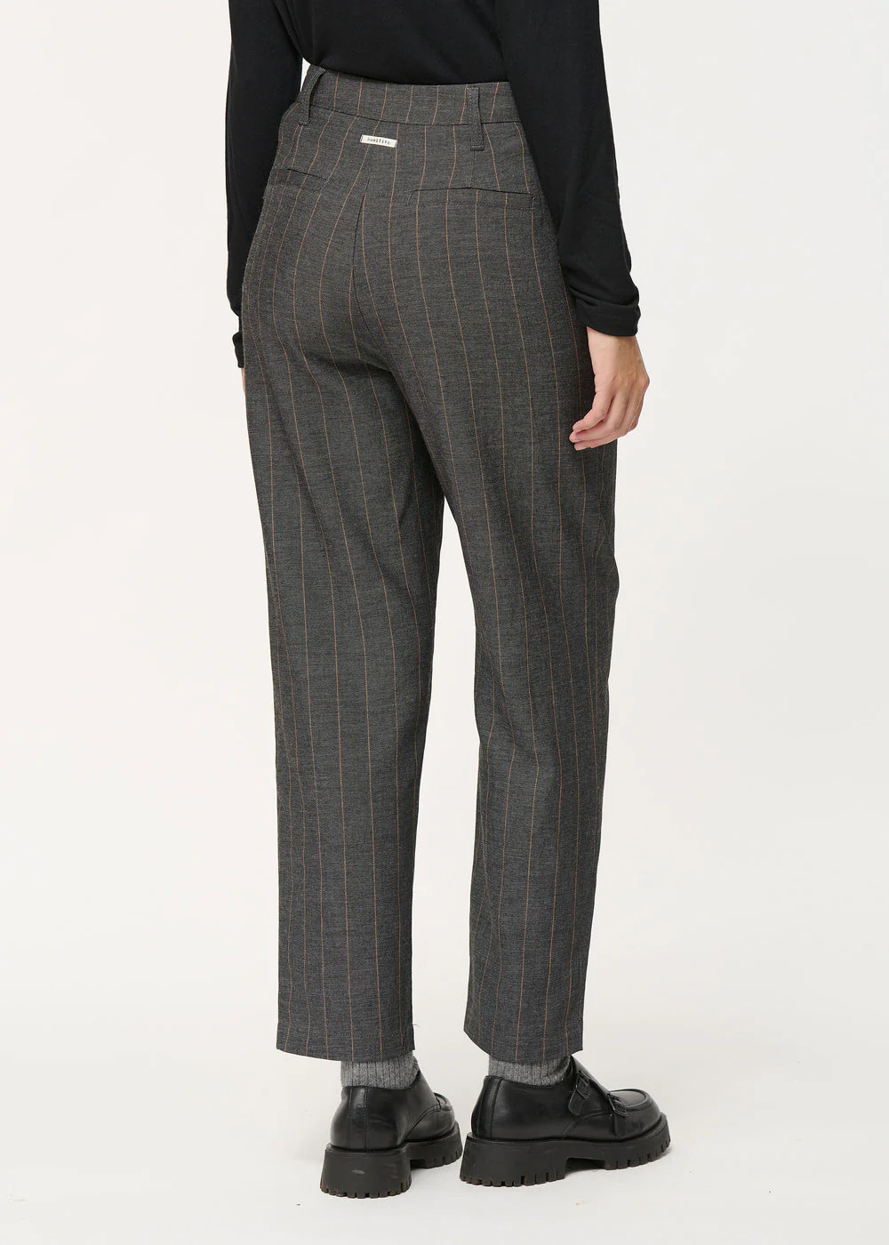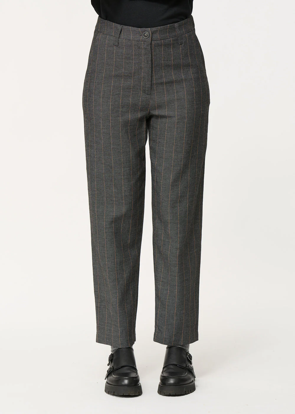 Pantalon carotte gris à fines rayures