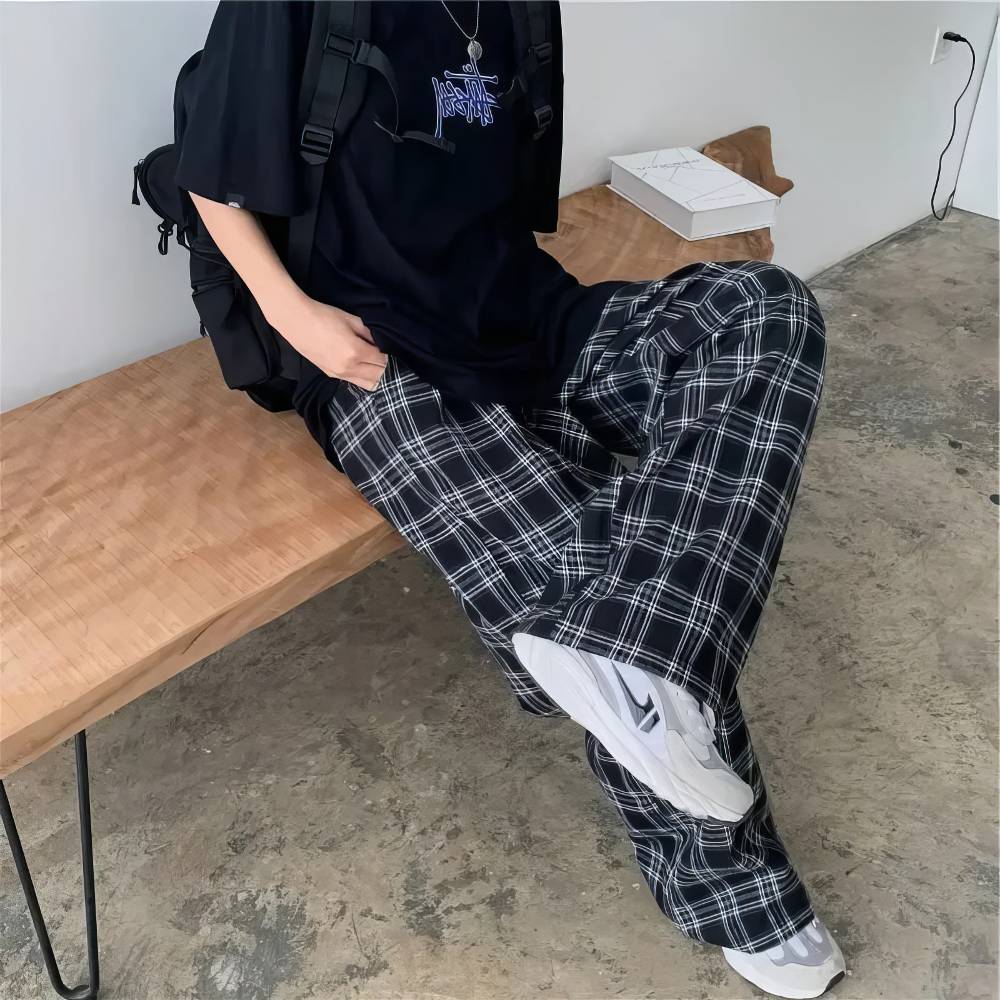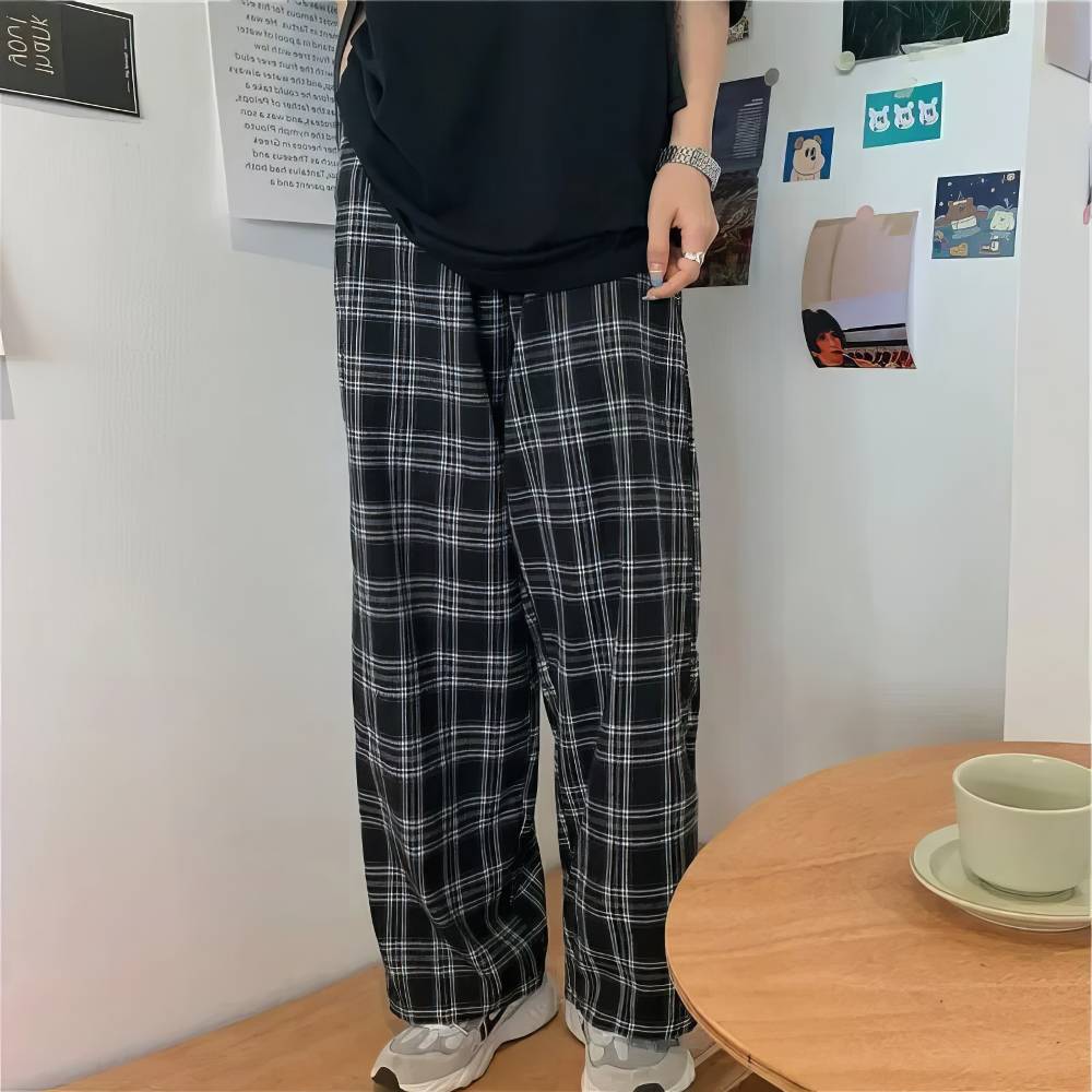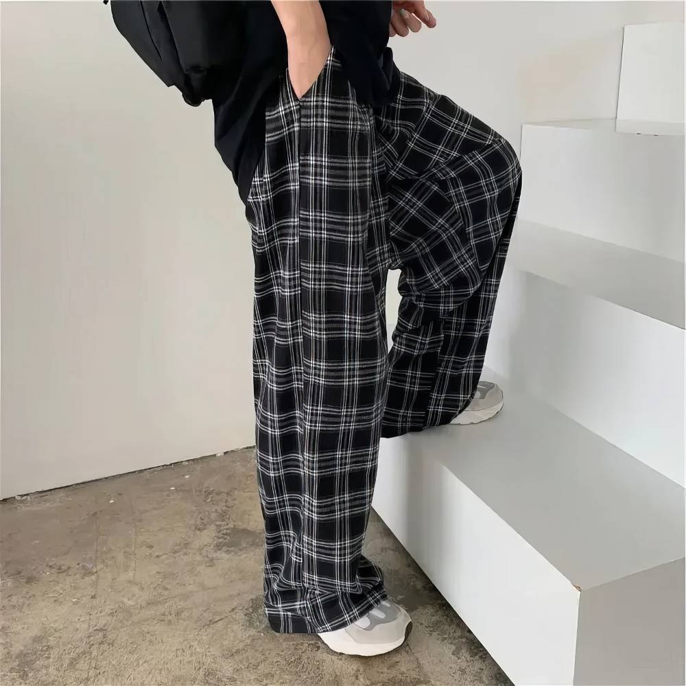 Pantalon Écossais À Carreaux Noir Et Blanc