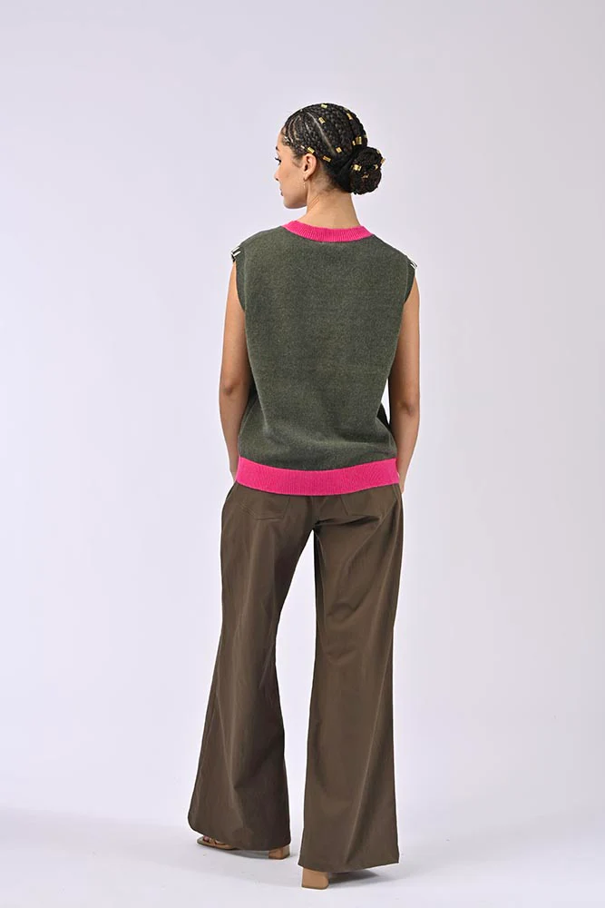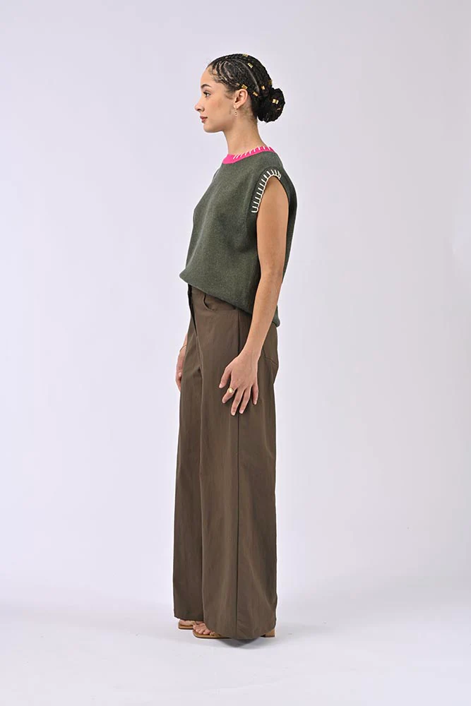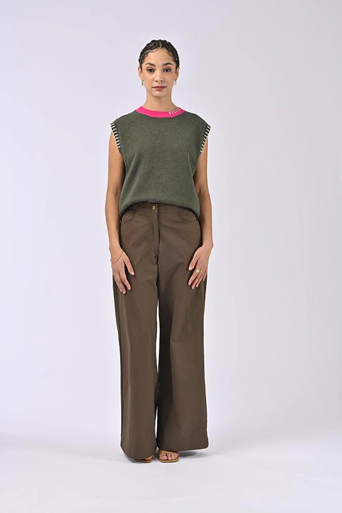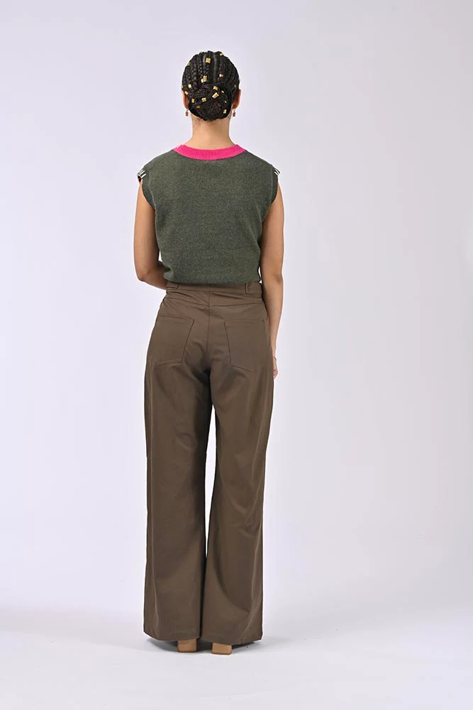 Le pantalon Terry Chocolat allie élégance et confort avec sa teinte riche et son tissu en 100% polyester. Sa coupe large et ses jambes évasées offrent une silhouette décontractée tout en garantissant une liberté de mouvement optimale.