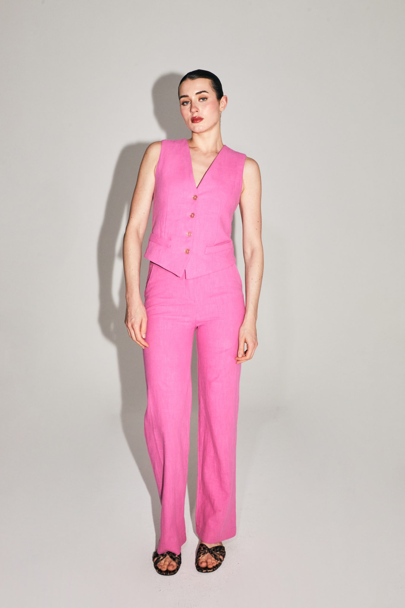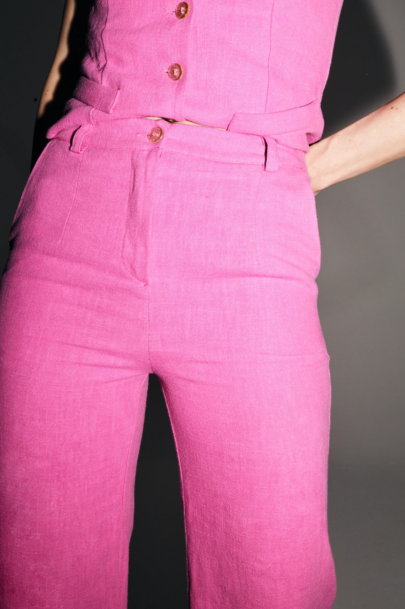 Pantalon Yves – Élégance et confort en lin fuchsia