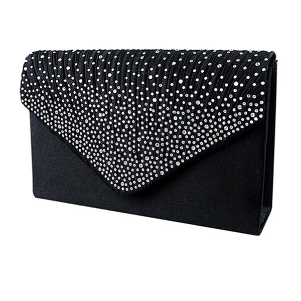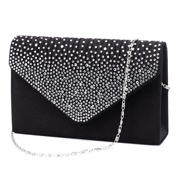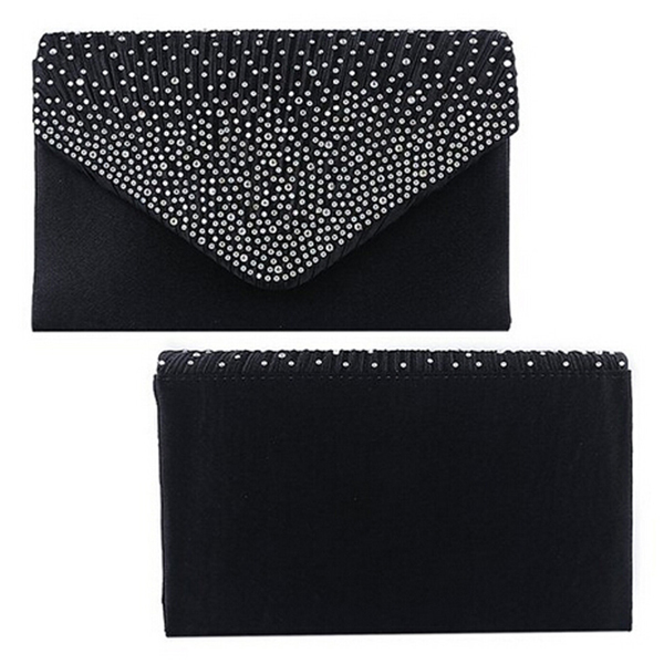 Impossible de résister à ce petit sac à main. Avec sa chaine détachable et son format mini, cette pochette de mariage strass noire à tout pour plaire. On adore son rabat en strass brillant et son aspect satiné très classy !