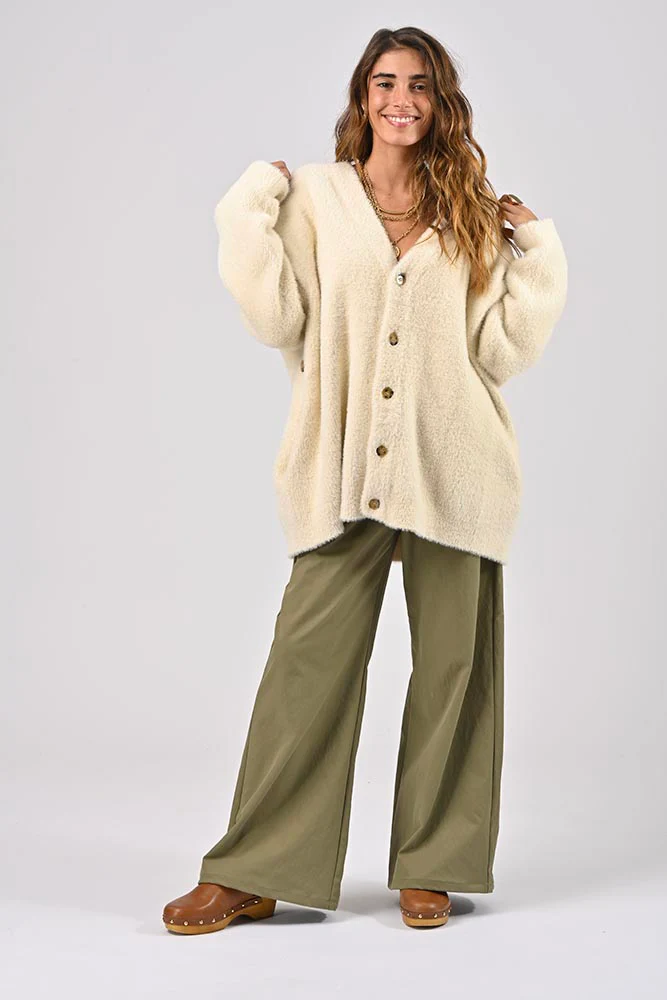 Le pull Evenora Écru allie élégance et confort avec sa coupe ample et son style oversize. Conçu dans une maille douce et épaisse, ce cardigan offre une sensation agréable au toucher, idéal pour les journées fraîches.