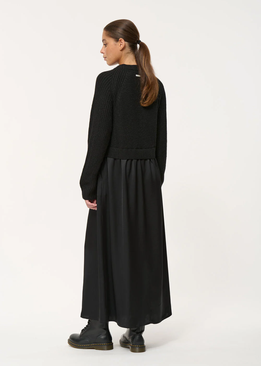 – Haut en tricot, bas en satin de viscose souple