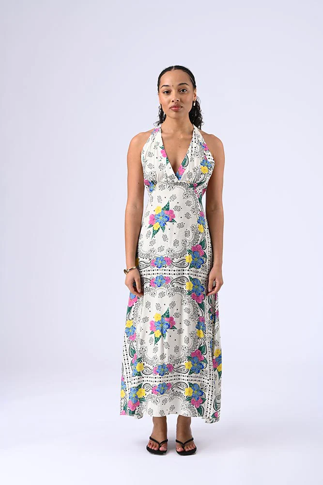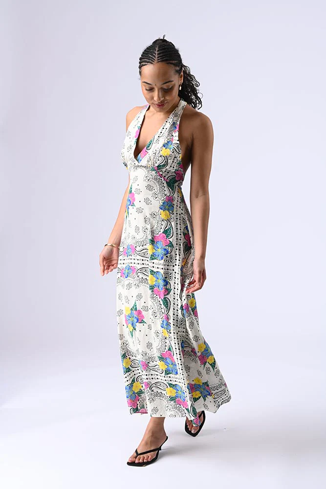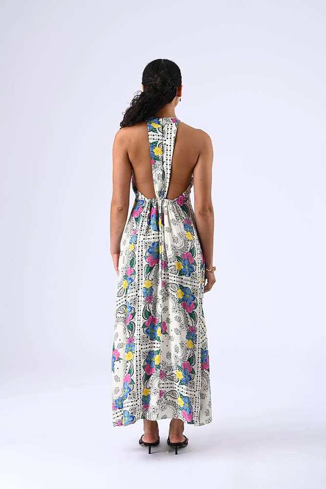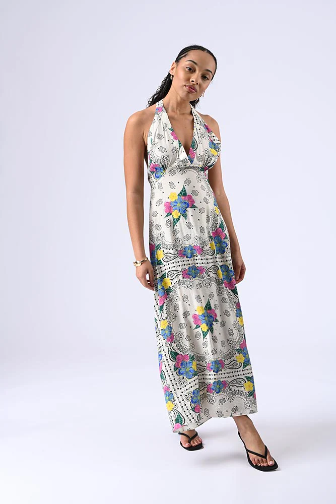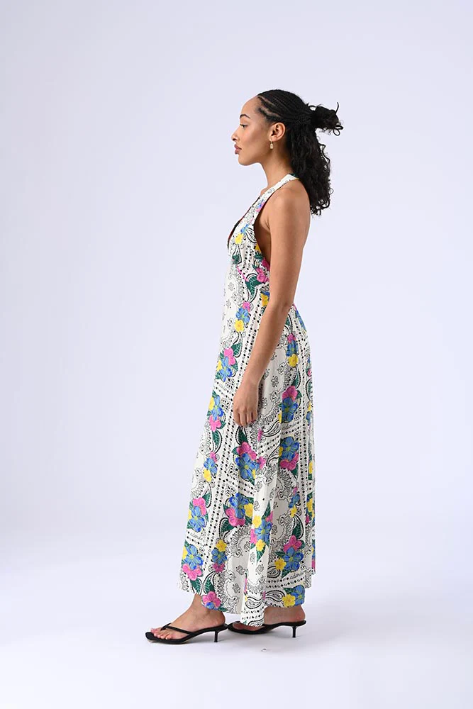 Robe longue à décolleté plongeant, dos nu avec larges bretelles reliant le bas, élastique sur le haut pour un ajustement parfait et une allure audacieuse. Couleur blanc