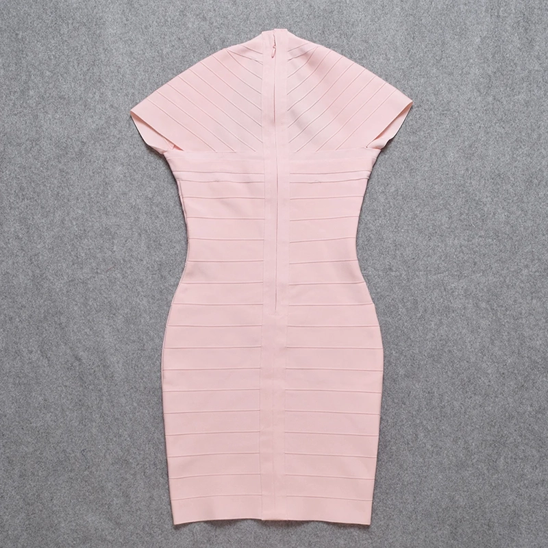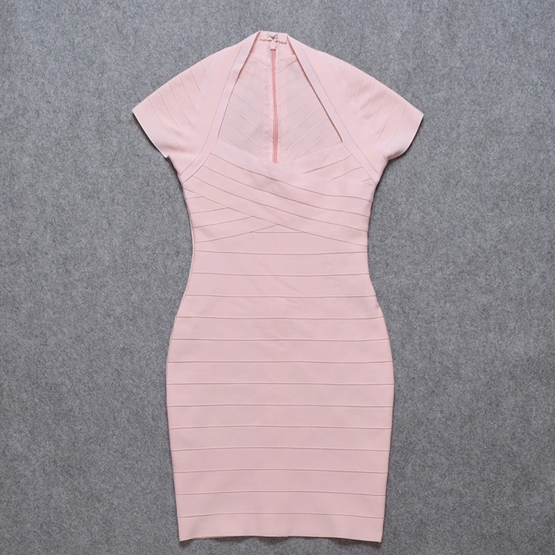 Robe Bandage Cocktail Courte Rose Manches Courtes