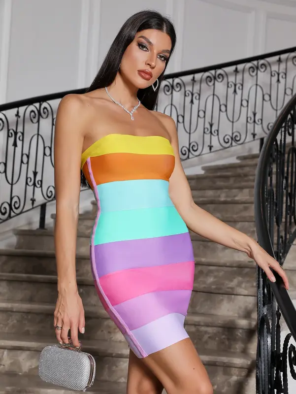 Laissez parler les couleurs ! Cette robe bustier est un cocktail de teintes sorbet, conçu pour un look fun, sexy et totalement inoubliable.
