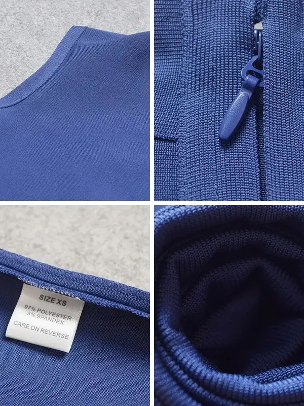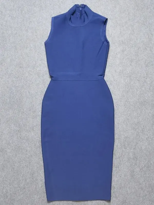 Un bleu cobalt intense et électrique, pour une allure qui captive le regard. Cette robe bandage midi est une véritable pièce de caractère. Sa coupe sans manches et son col montant créent une silhouette incroyablement longiligne et affirmée. Le buste est subtilement rehaussé d’un panneau de tissu texturé, un détail raffiné. Confectionnée dans notre tissu bandage extensible, elle sculpte vos courbes avec une grâce puissante, pour un confort et un maintien parfaits.