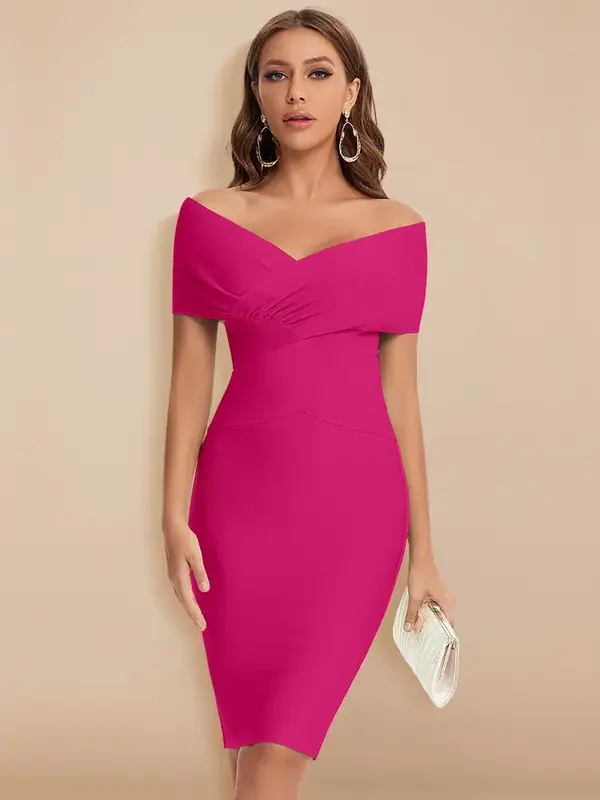 Un rose fuchsia audacieux et plein de vie. Cette robe bandage midi est une merveille de design intemporel. Son magnifique col Bardot drapé dégage les épaules avec une grâce infinie, créant un port de tête digne des plus grandes icônes. Confectionnée dans notre tissu bandage signature, elle sculpte la silhouette pour un effet sirène incroyablement flatteur, alliant maintien parfait et confort absolu.