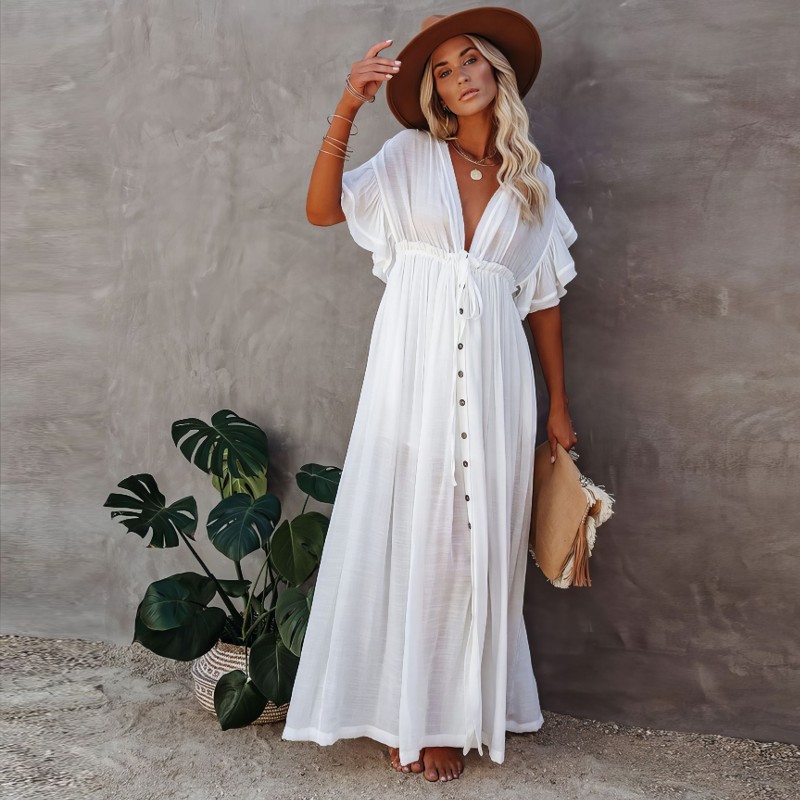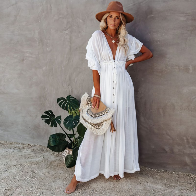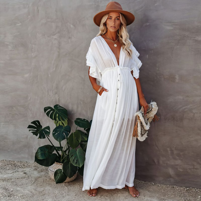 La robe est fabriquée à partir d’un mélange de polyester et de coton, garantissant non seulement la durabilité, mais aussi la légèreté et la respirabilité pour un confort optimal. Sa couleur blanche immaculée suggère une pureté sophistiquée, faisant de cette robe le choix parfait pour n’importe quelle occasion. Dotée d’un col en V, elle met en valeur votre décolleté tout en ajoutant une allure féminine. Enfin, ses manches courtes et évasées ajoutent une touche de flair bohème, complétant parfaitement le style de la robe. Cette robe blanche bohème grande taille est une véritable affirmation de style, prête à être portée et appréciée.