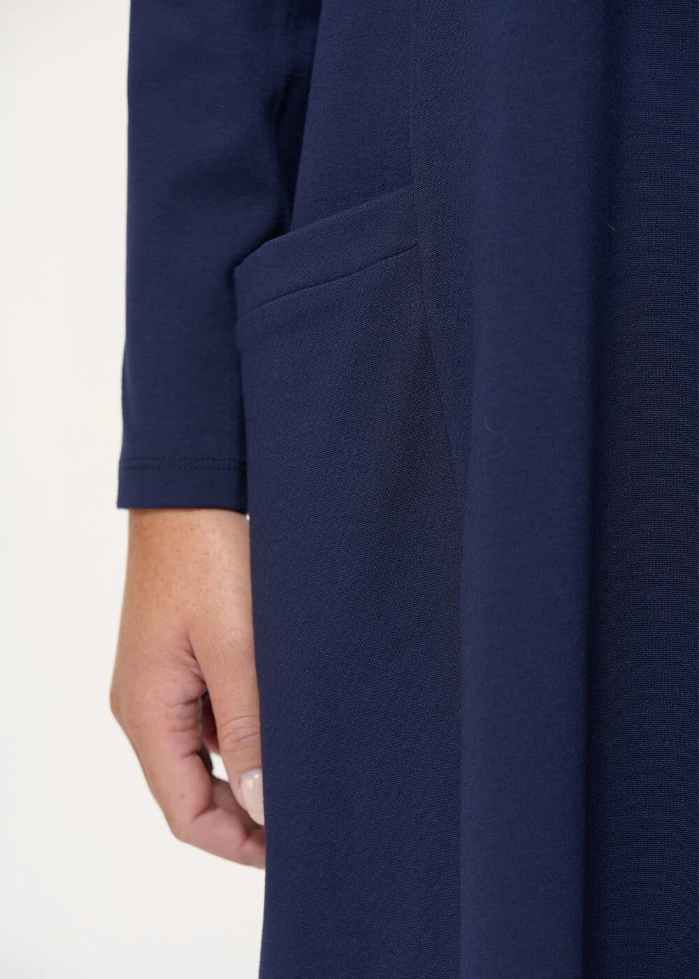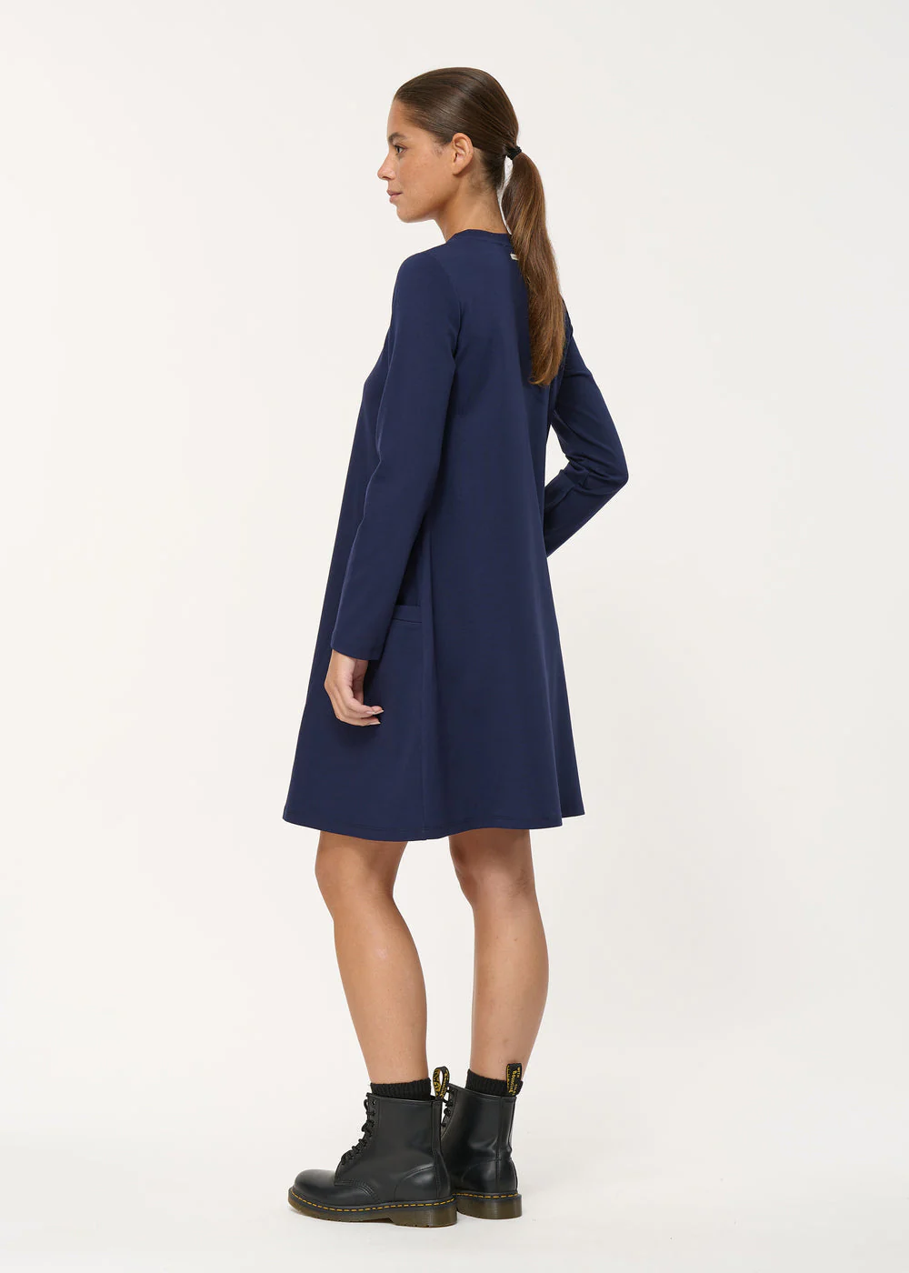 – Robe courte forme trapèze– Encolure ronde– Manches longues– Poches dans les découpes côtés– Longueur : 93 cm Notre mannequin mesure 1m72 et porte une taille 36/S.Ce modèle taille normalement, prenez votre taille habituelle.