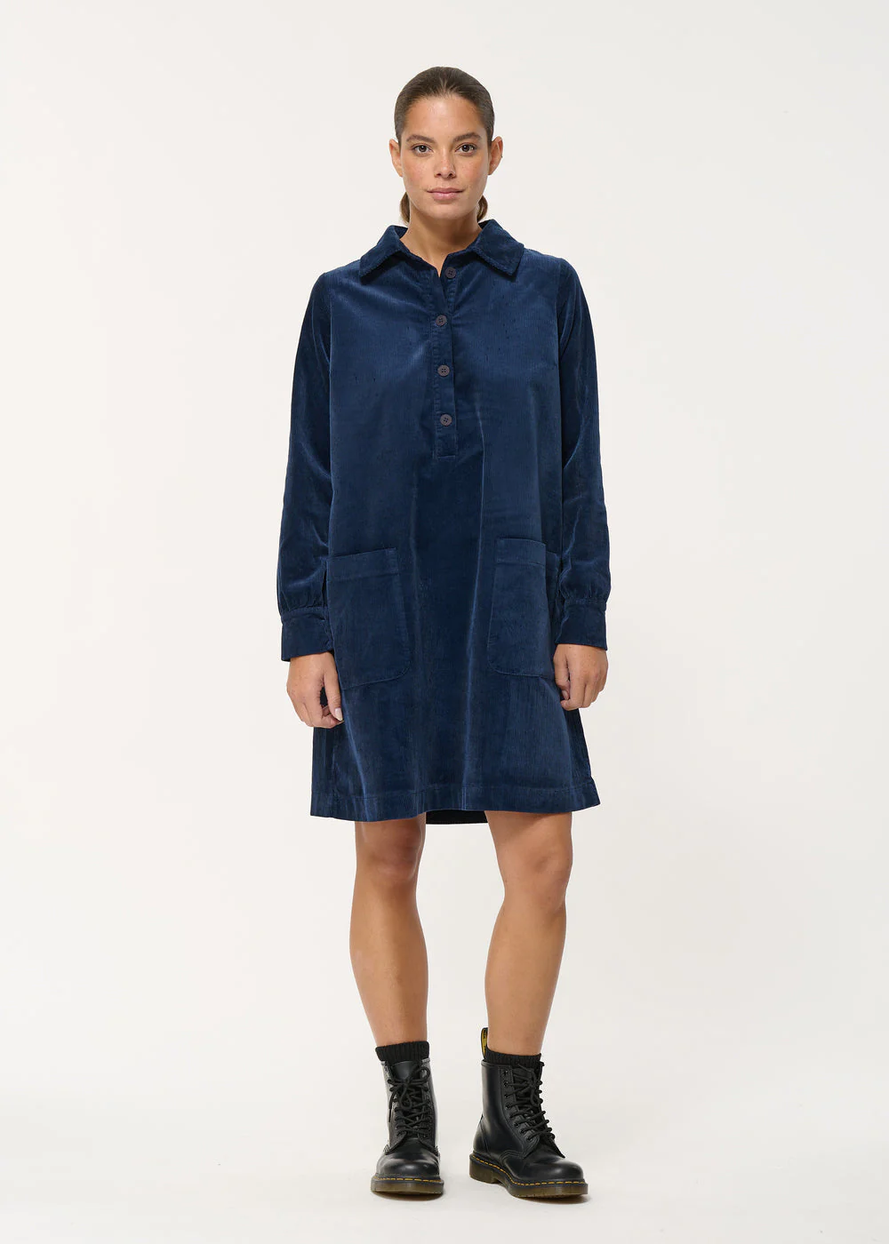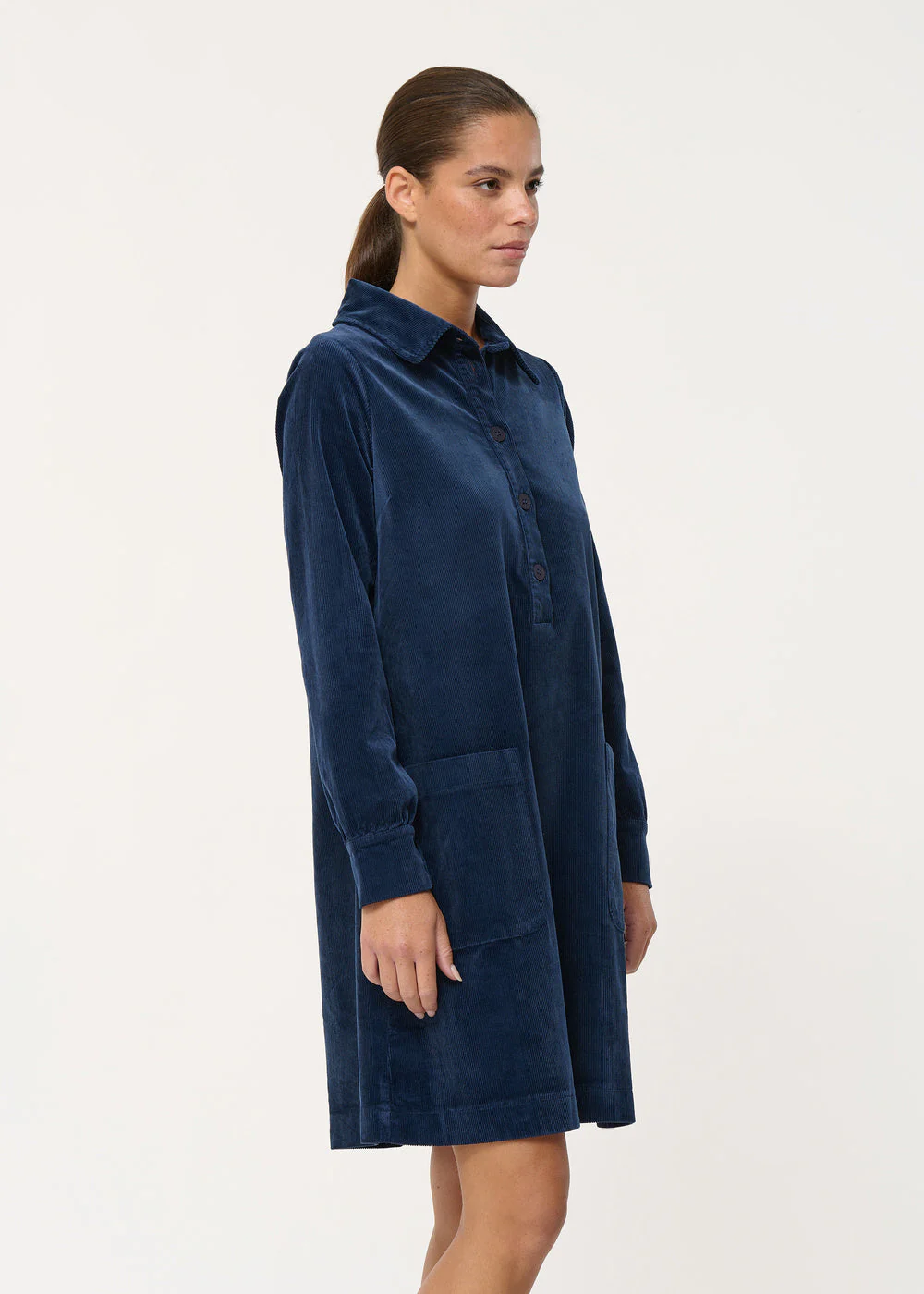 – Robe courte trapèze en velours côtelé souple– Col chemise avec patte de boutonnage– Manches longues avec poignets boutonnés– Poches plaquées à la taille– Longueur : 96 cm Notre mannequin mesure 1m72 et porte une taille 36/S.Ce modèle taille normalement, prenez votre taille habituelle.