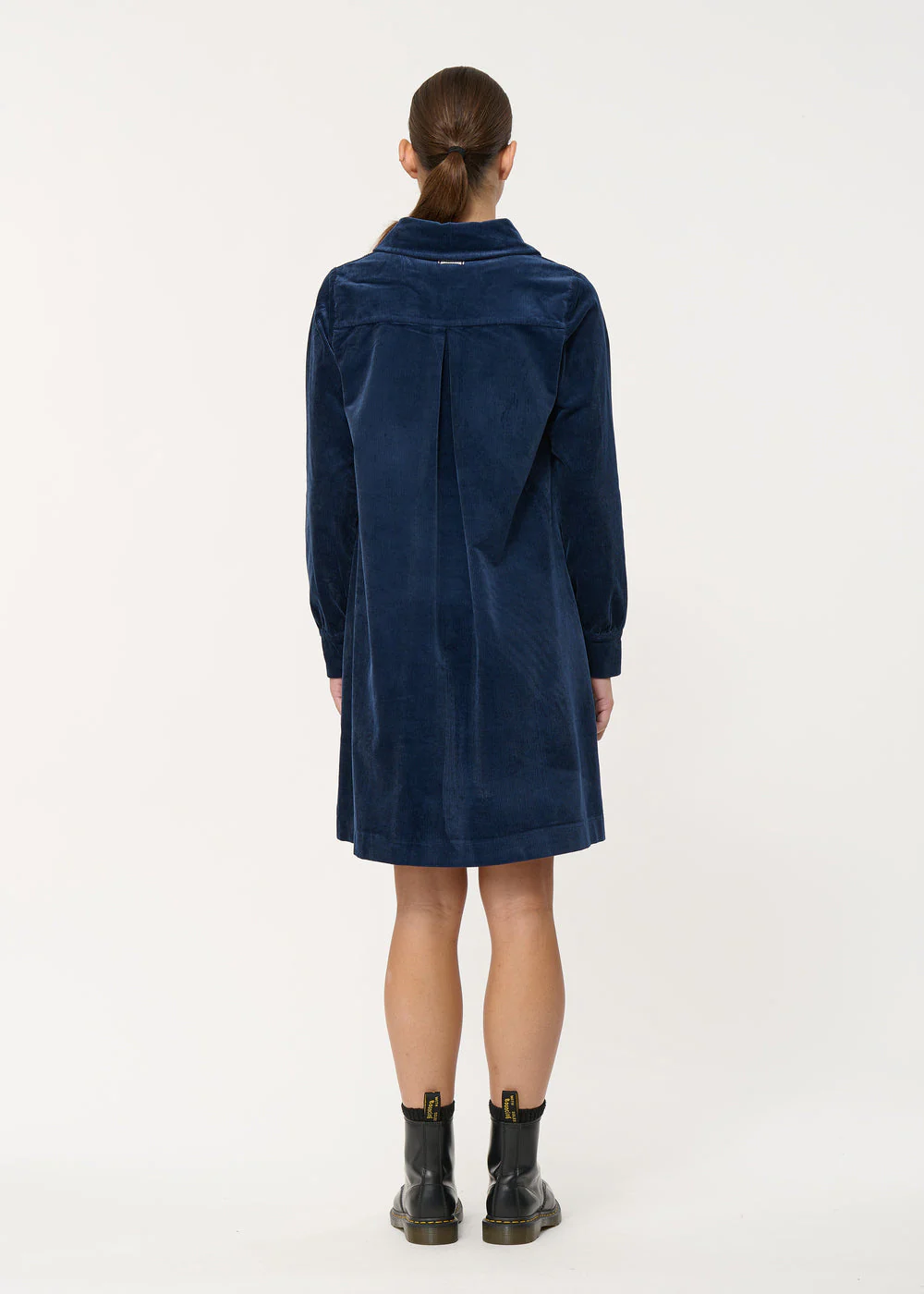 Robe courte trapèze bleu marine en velours côtelé