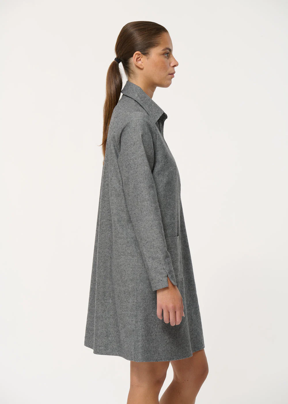 Robe courte trapèze gris foncé en flanelle chinée
