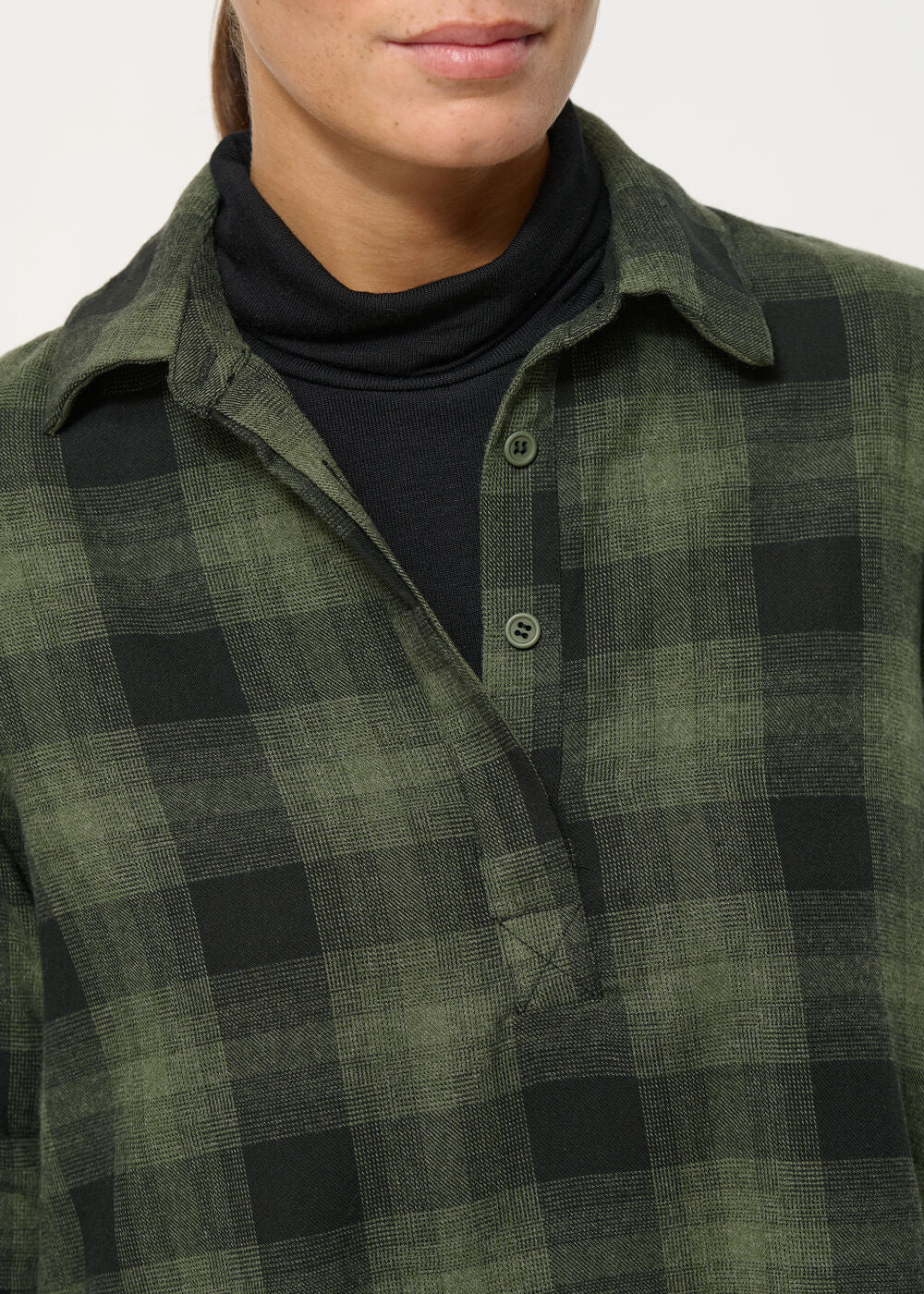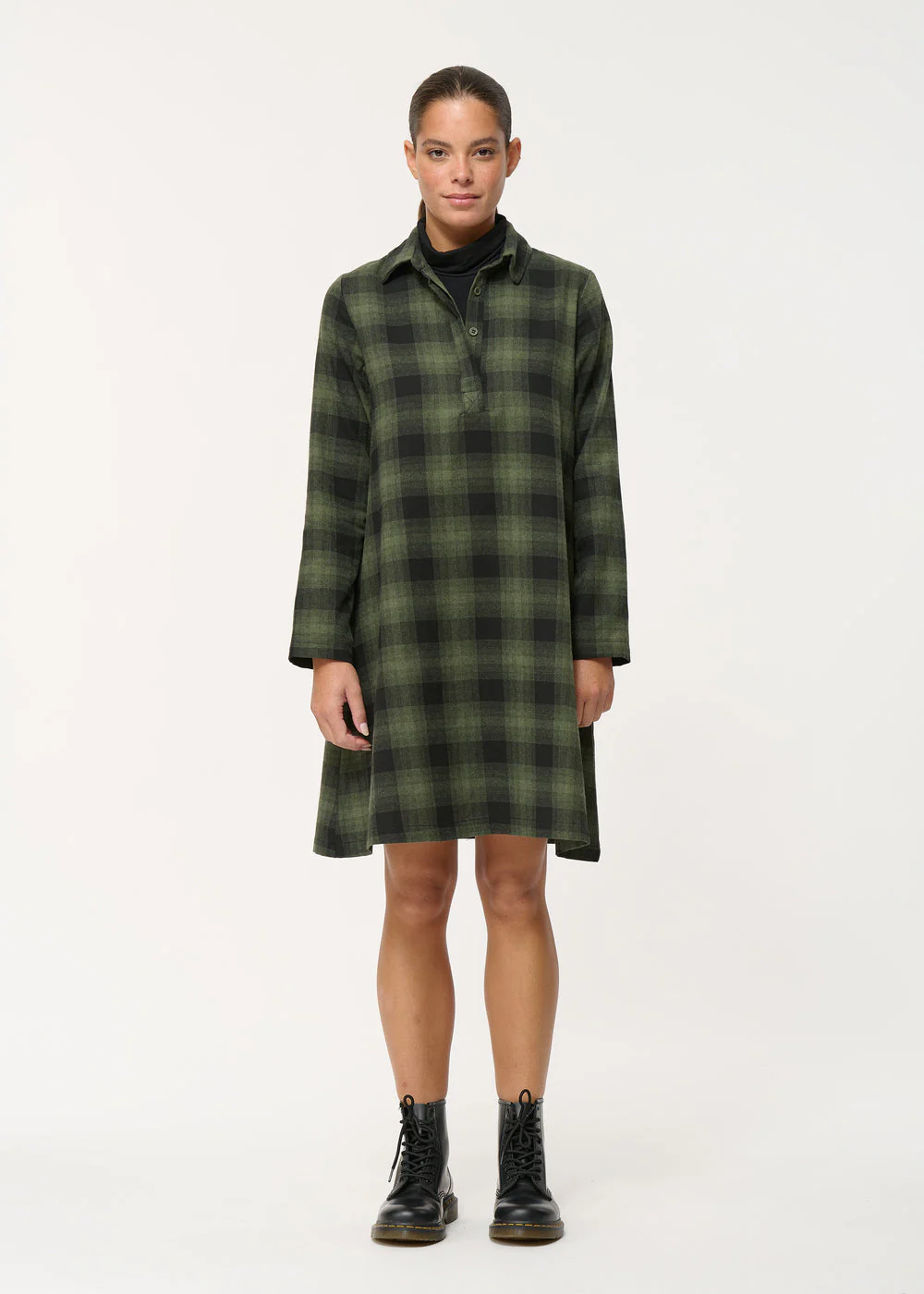 – Robe courte à imprimé carreaux– Forme trapèze– Col chemise avec patte de boutonnage– Manches longues larges– Longueur : 96 cm Notre mannequin mesure 1m72 et porte une taille 36/S.Ce modèle taille normalement, prenez votre taille habituelle.