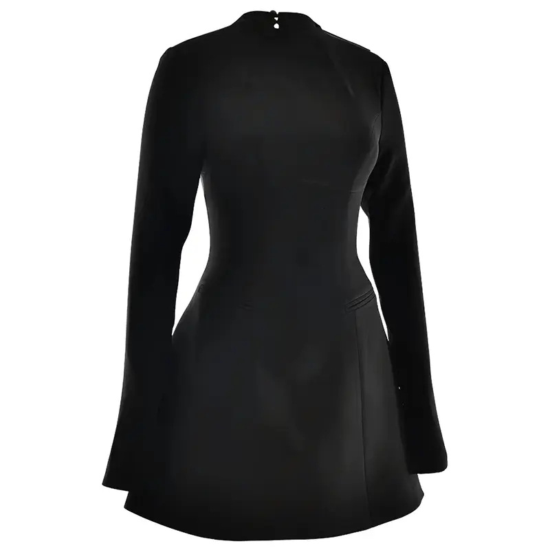 Avec ses manches longues longues fendues et sa coupe trapèze structurée, cette robe est idéale pour sublimer toutes les morphologies tout en offrant une allure chic et contemporaine. Parfaite pour une soirée chic, un gala ou un événement spécial, elle conjugue style et confort avec brio.