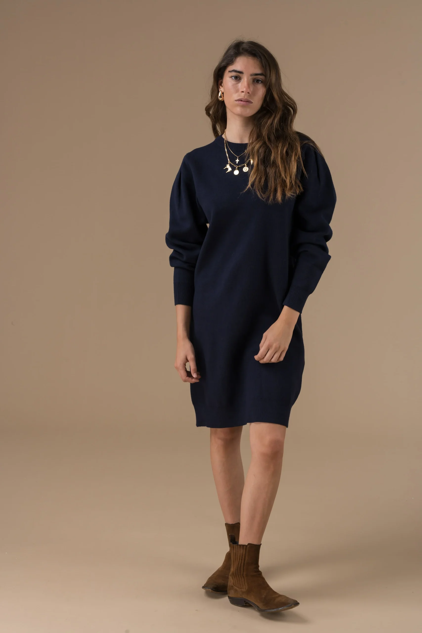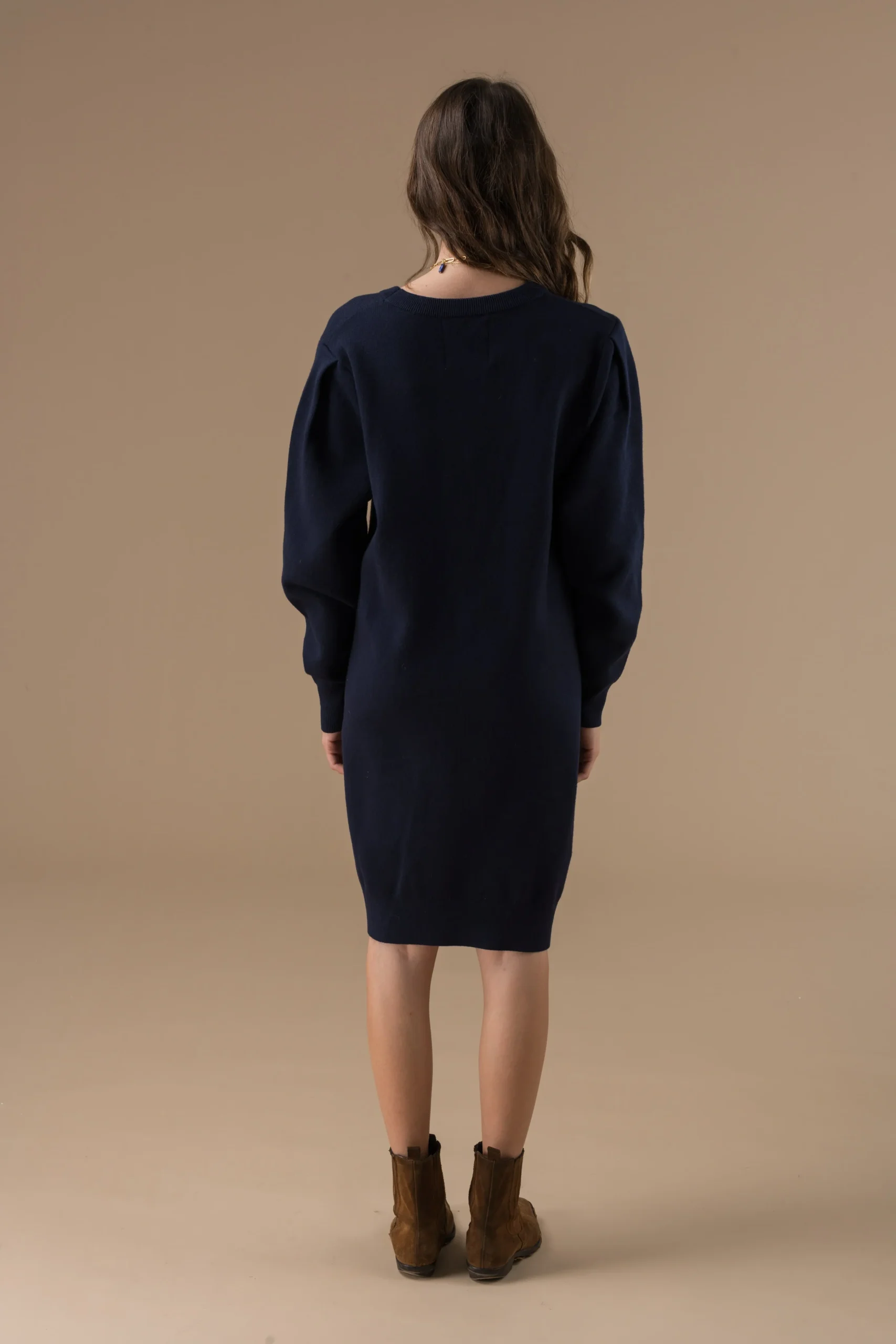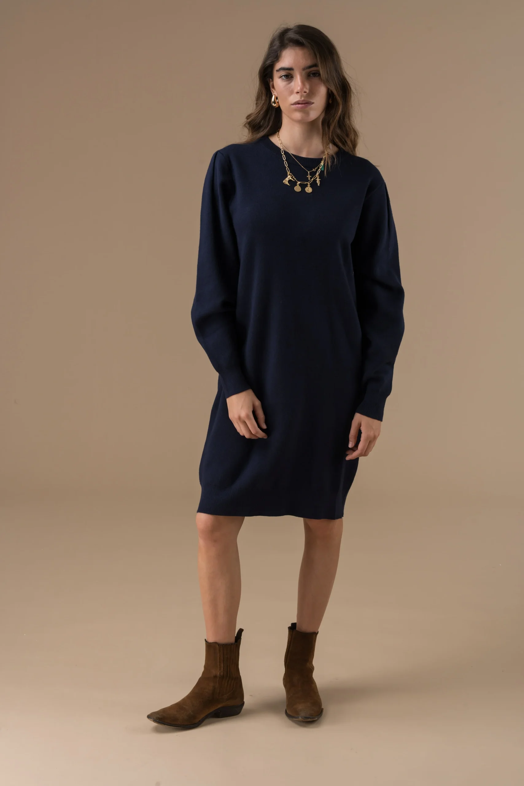 Robe Isilde en maille à manches longues, coupe droite et minimaliste. Confortable et facile à porter, elle s’adapte aussi bien au quotidien qu’aux looks plus habillés.