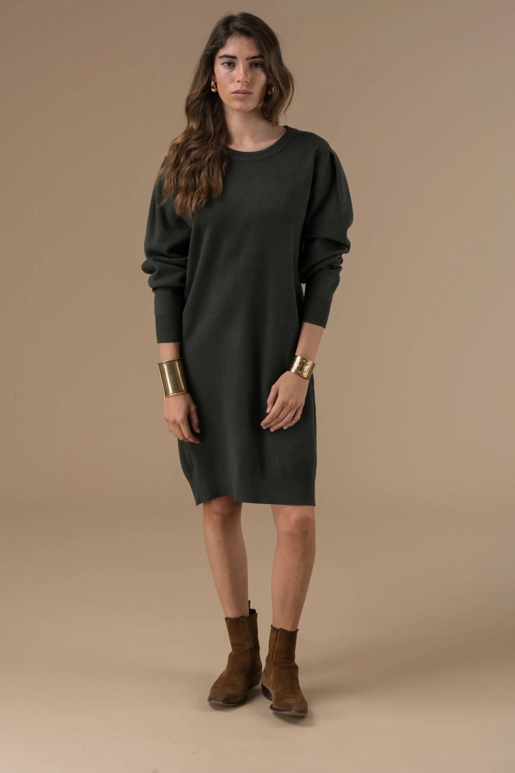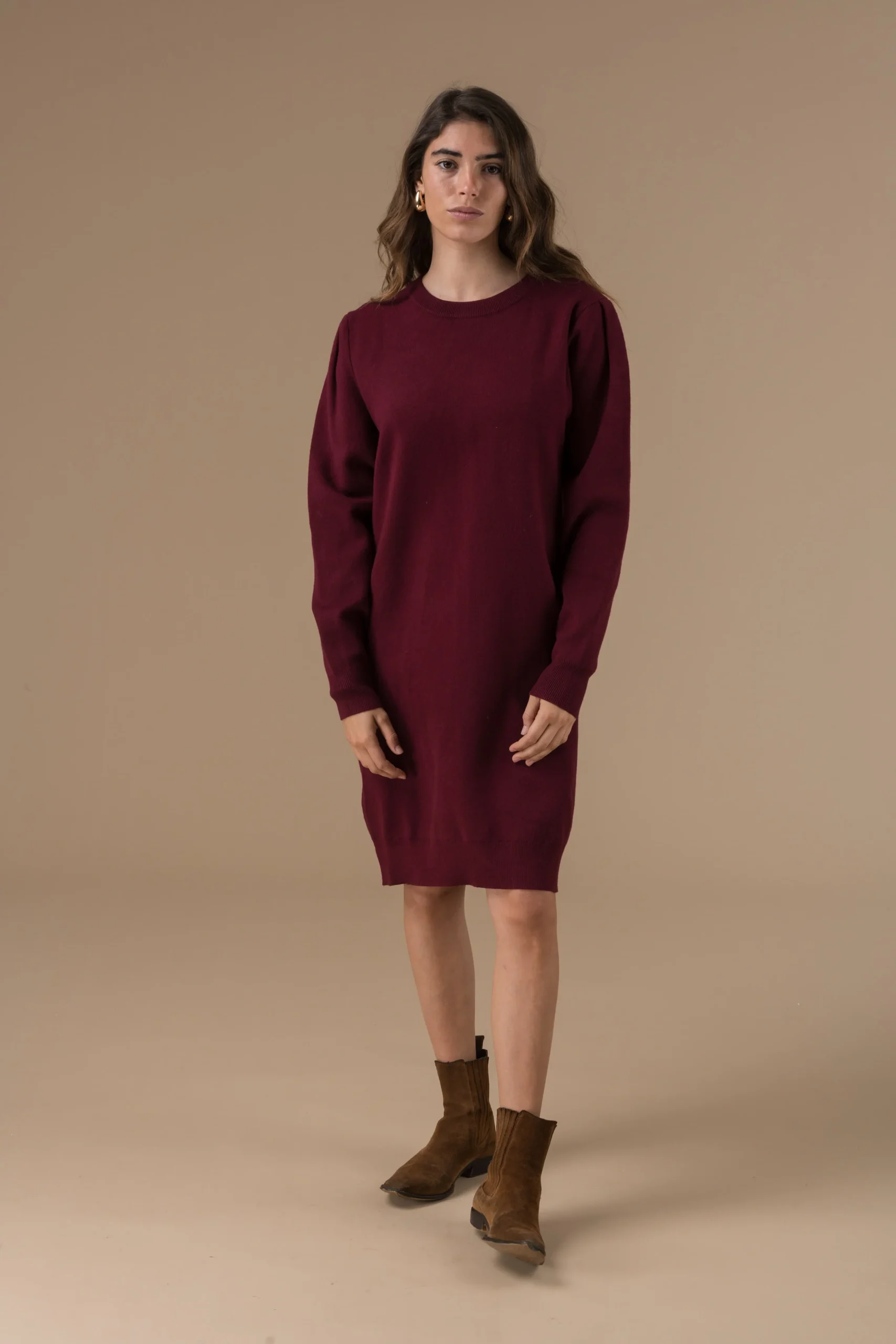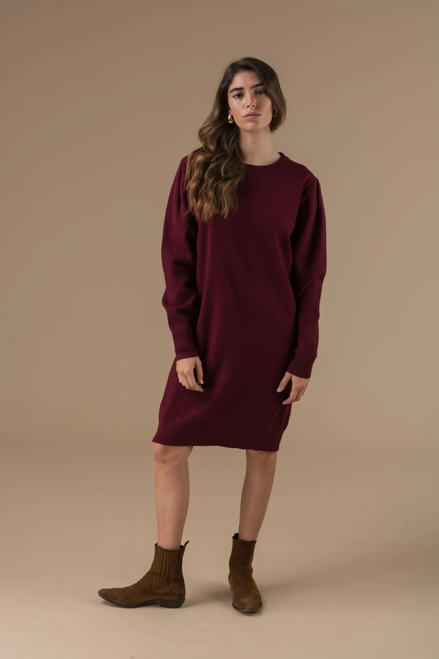Robe Isilde en maille à manches longues, coupe droite et minimaliste. Confortable et facile à porter, elle s’adapte aussi bien au quotidien qu’aux looks plus habillés.
