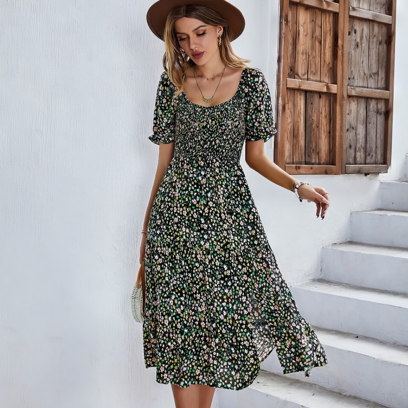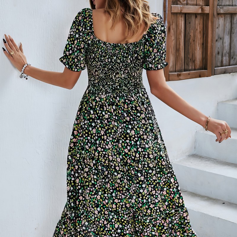 La Robe Longue Fleurie Manche Courte est un mélange parfait d’élégance classique et de charme printanier. Avec son fond noir et ses motifs floraux délicats, cette robe offre une vision contemporaine de la féminité. Les manches courtes et la longueur de la robe ajoutent une touche de légèreté à ce modèle, idéal pour toutes occasions, que ce soit pour une journée de travail ou un cocktail en soirée.