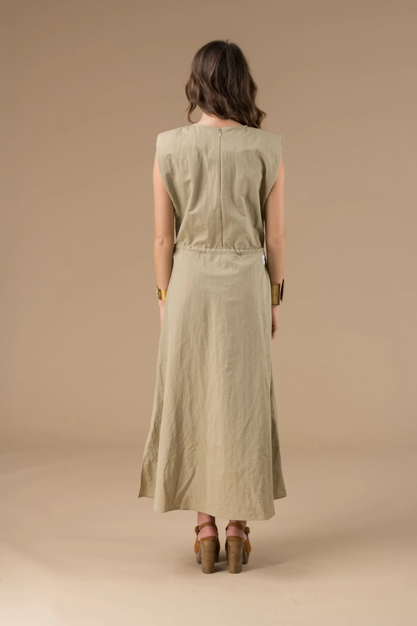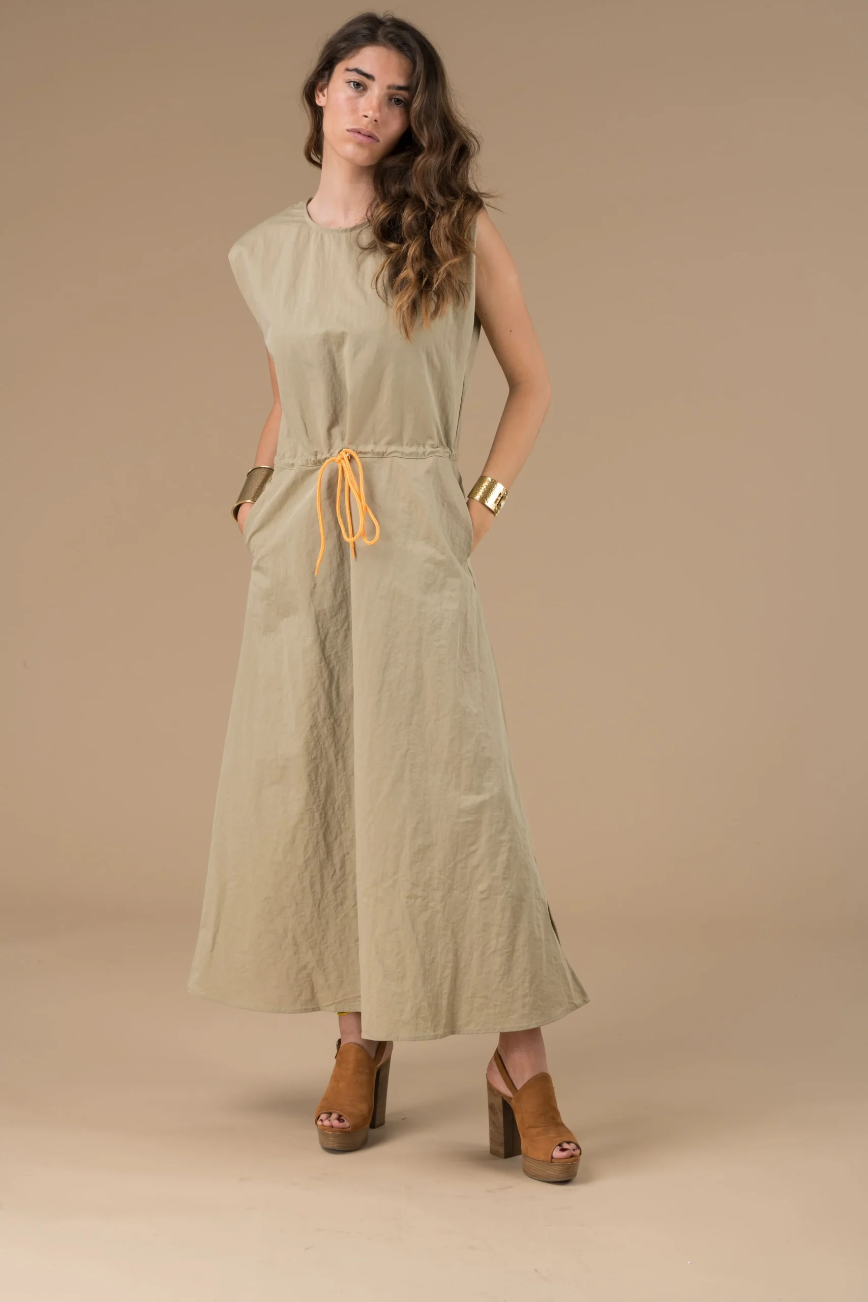 La Robe Margareth Beige longue sans manches est l’incontournable de la saison, idéale pour un look décontracté et chic. Elle se porte aussi bien pour une journée de travail que pour une sortie en ville, s’adaptant à de multiples occasions. C’est la pièce idéale pour un dressing capsule, qui célèbre la sobriété et l’élégance.