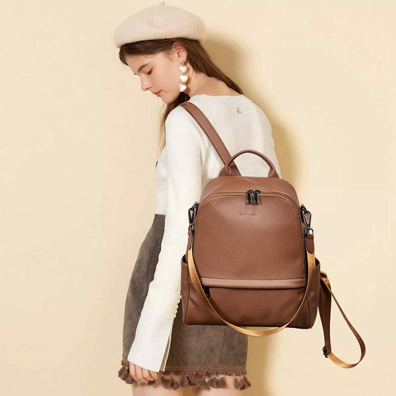 Sac à Dos Antivol Femme Cuir Marron MENCIA