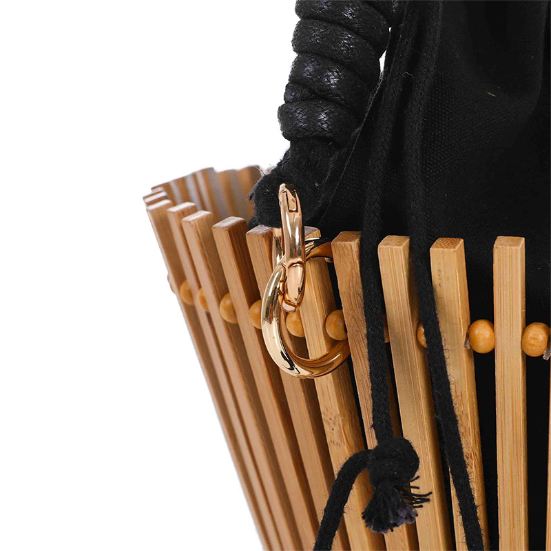 Fraîcheur et Original pour ce Sac Bambou Seau ! Fabriqué à partir de bois naturel de bambou, ce petit sac porté main en forme de « seau » sera le compagnon idéal des beaux jours.