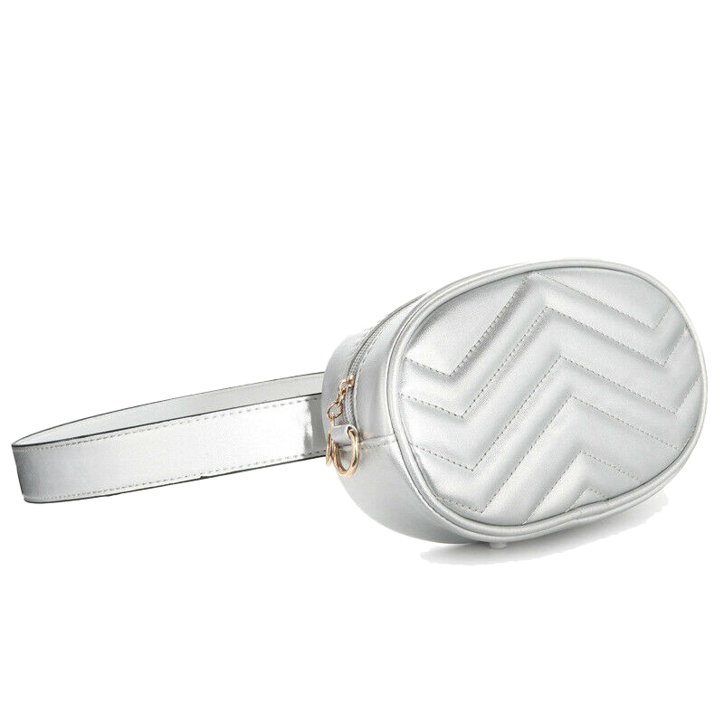 Sac Ceinture Matelassé Chevron Argenté JANE : Chic et Décontracté