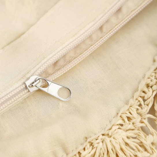 L’Eté, le sac en paille est le meilleur allié des virées ensoleillées, du bord de mer au marché du coin. Pour agrémenter une tenue casual, ce sac paille tressee bohème remplira son rôle à merveille. On adore son design façon crochet laissant apparaitre le tissu de la doublure. Pour prendre soin de vos affaires, ce sac paille pour femme est zippé et équipé d’une petite poche intérieure. Ce sac bohème se porte sur l’épaule ou à la main grâce à deux anses tressées. Pratique par sa taille XXL, il permet d’emporter avec soi l’essentiel tout comme le superflu.
