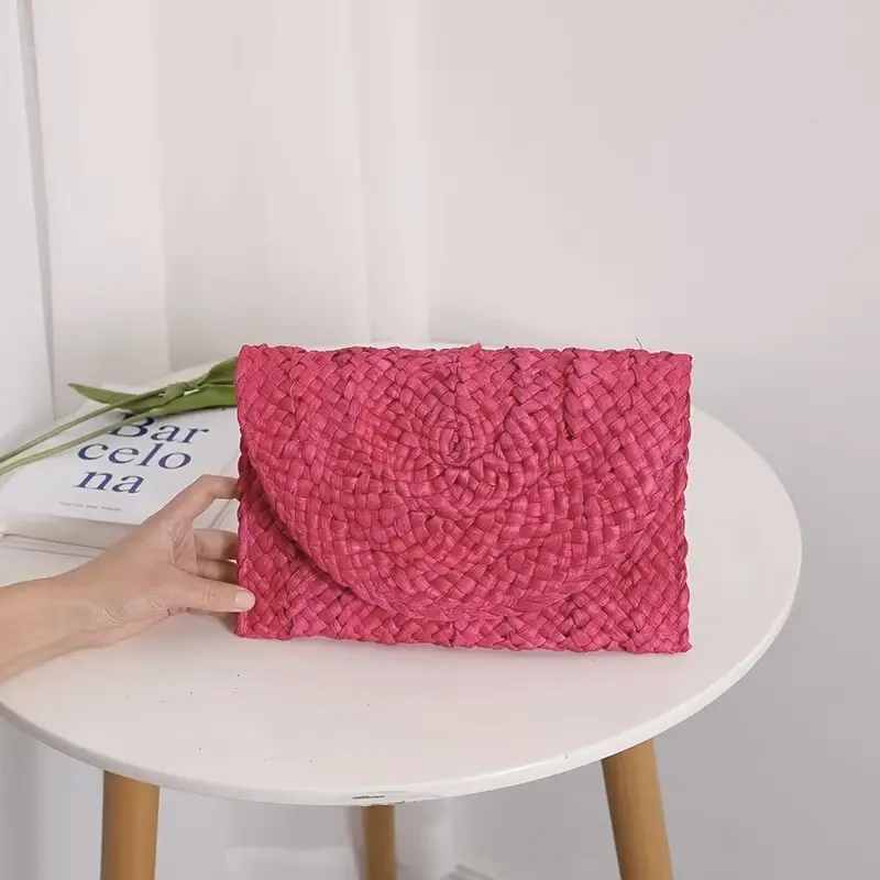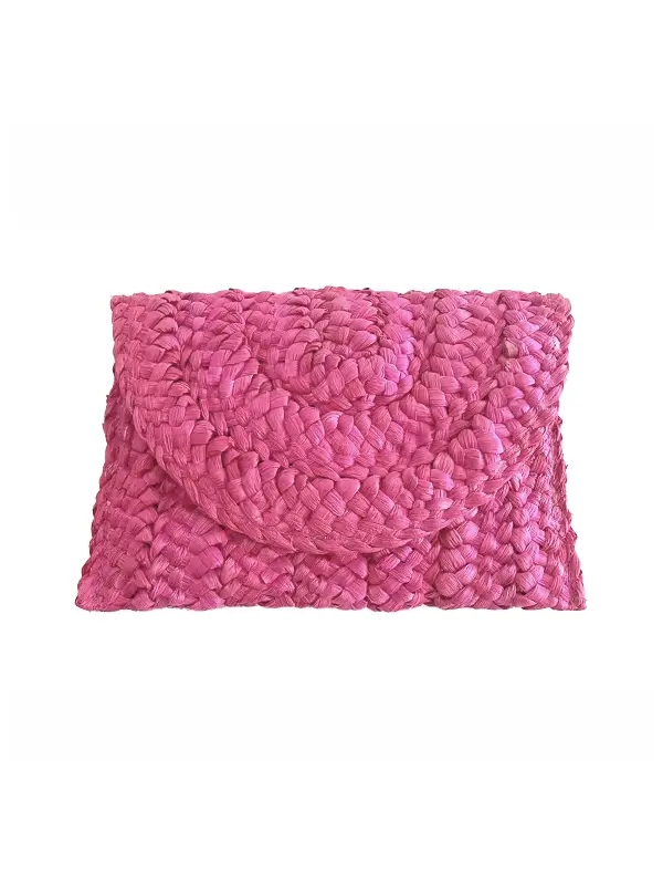Sac Pochette Paille Tressée Bohème – Rose