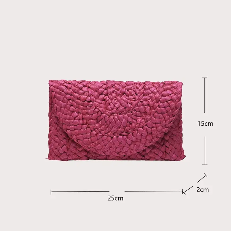 Distinguez-vous en adoptant le style bohème ! Simple et élégante, ce sac pochette paille tressée accessoirisera parfaitement votre tenue.