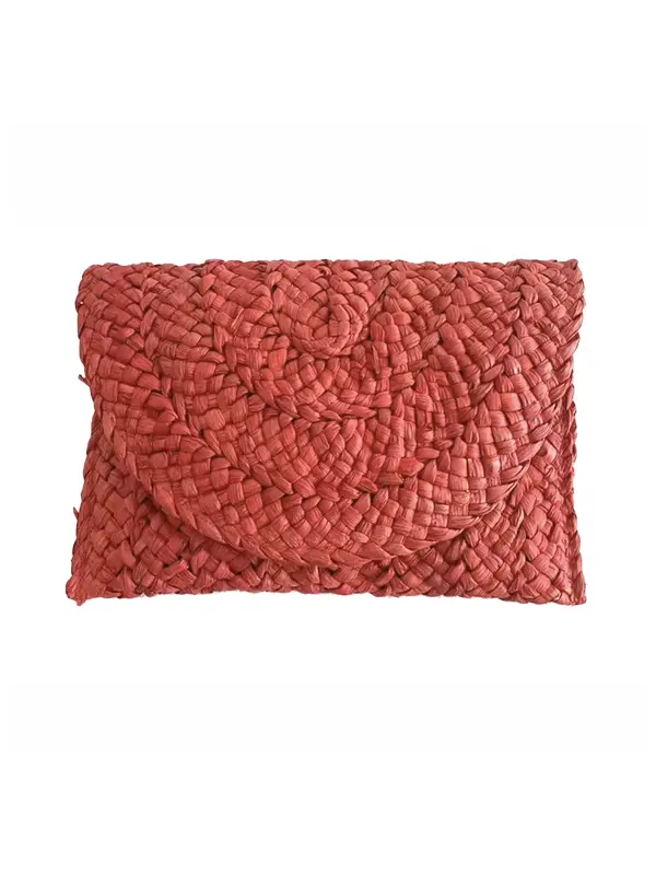 Sac Pochette Paille Tressée Bohème Rouge